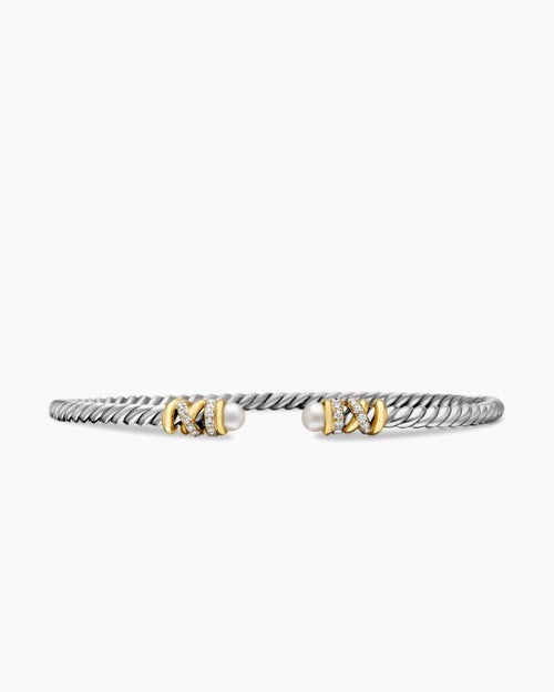 Petite Helena Classic Cable Bracelet Sterling Silver with 18ct Yellow Gold, Pearls and Diamonds, 3mm