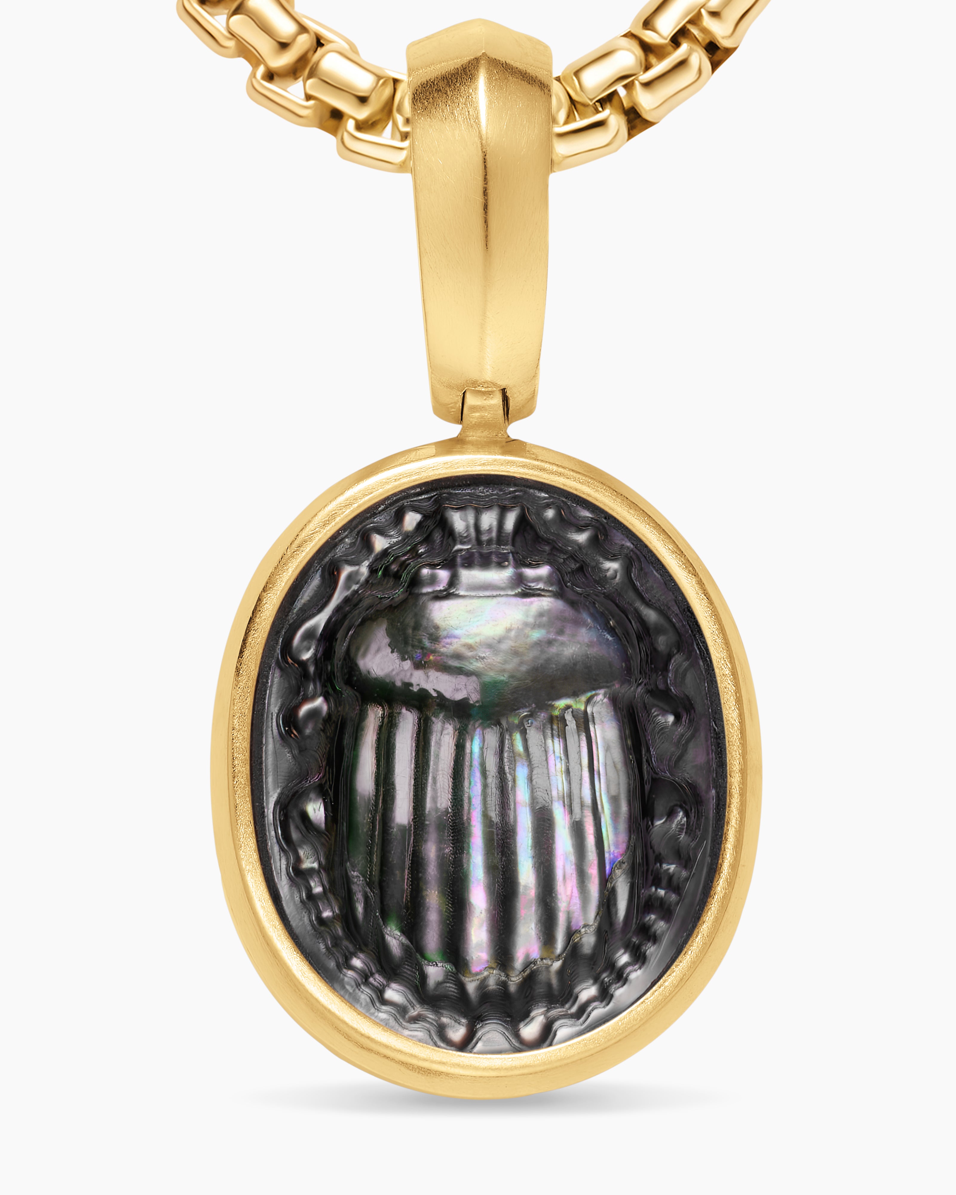 Petrvs® Petite Scarab Amulet 18ct Yellow Gold with Black Mother of Pearl, 12.1mm