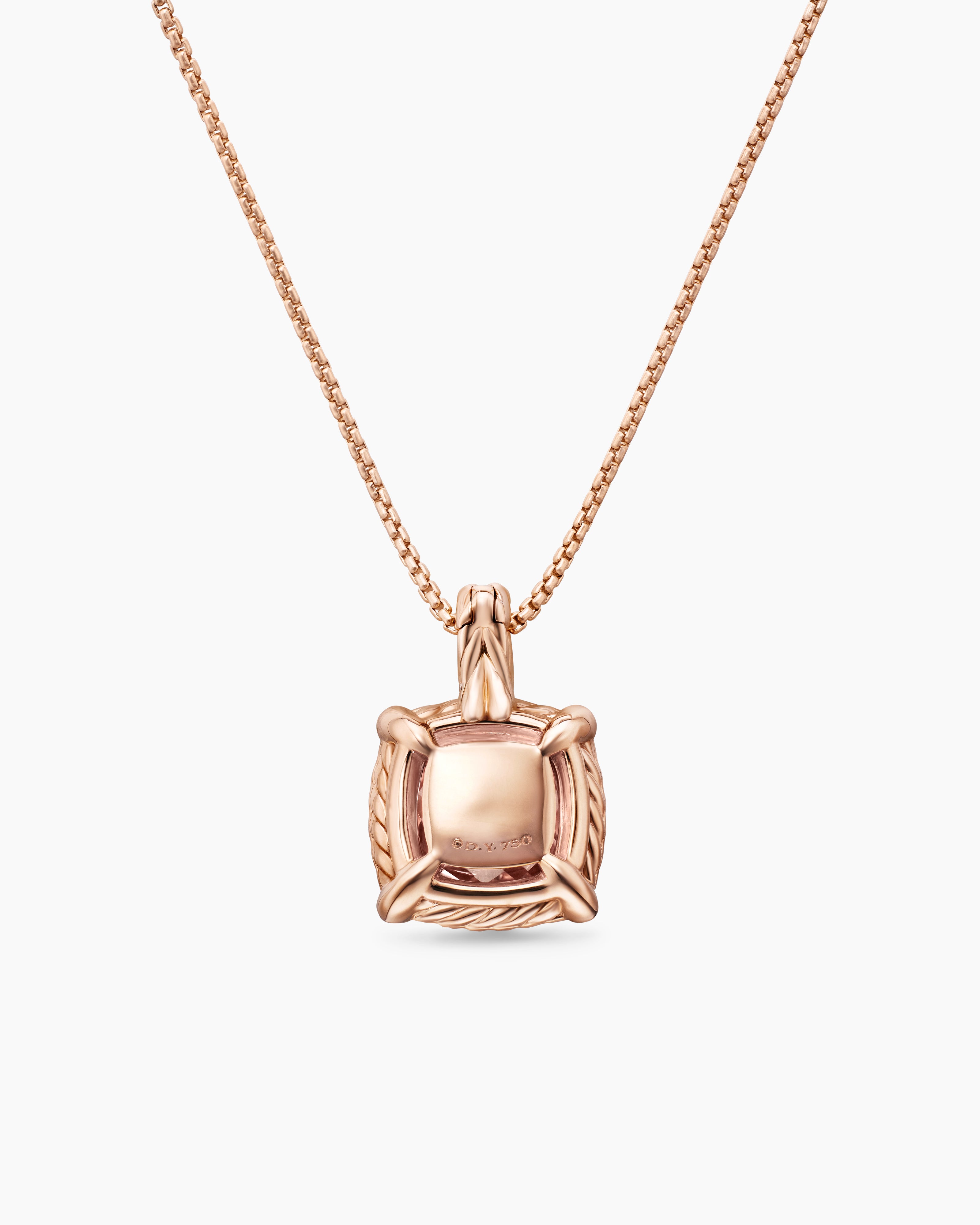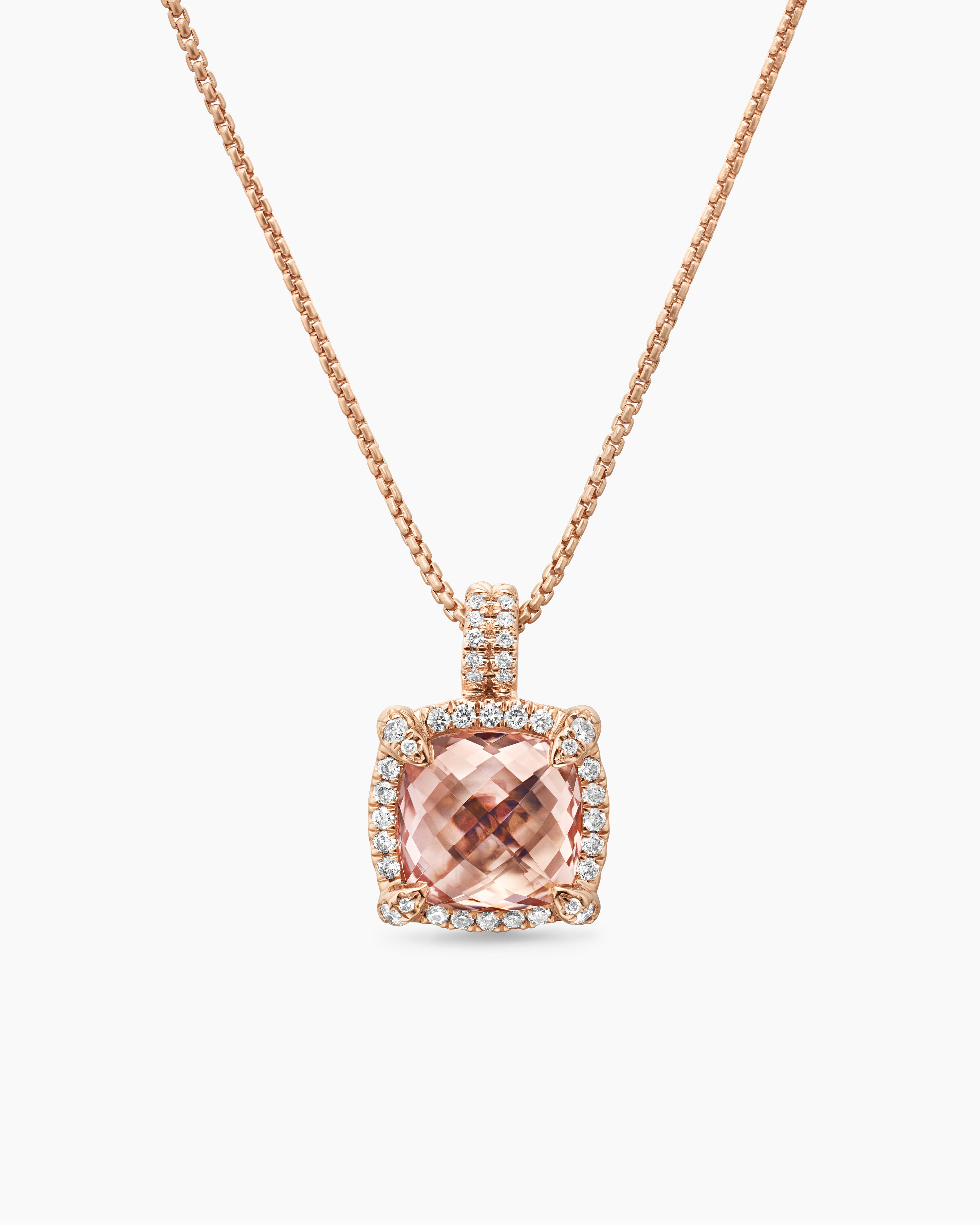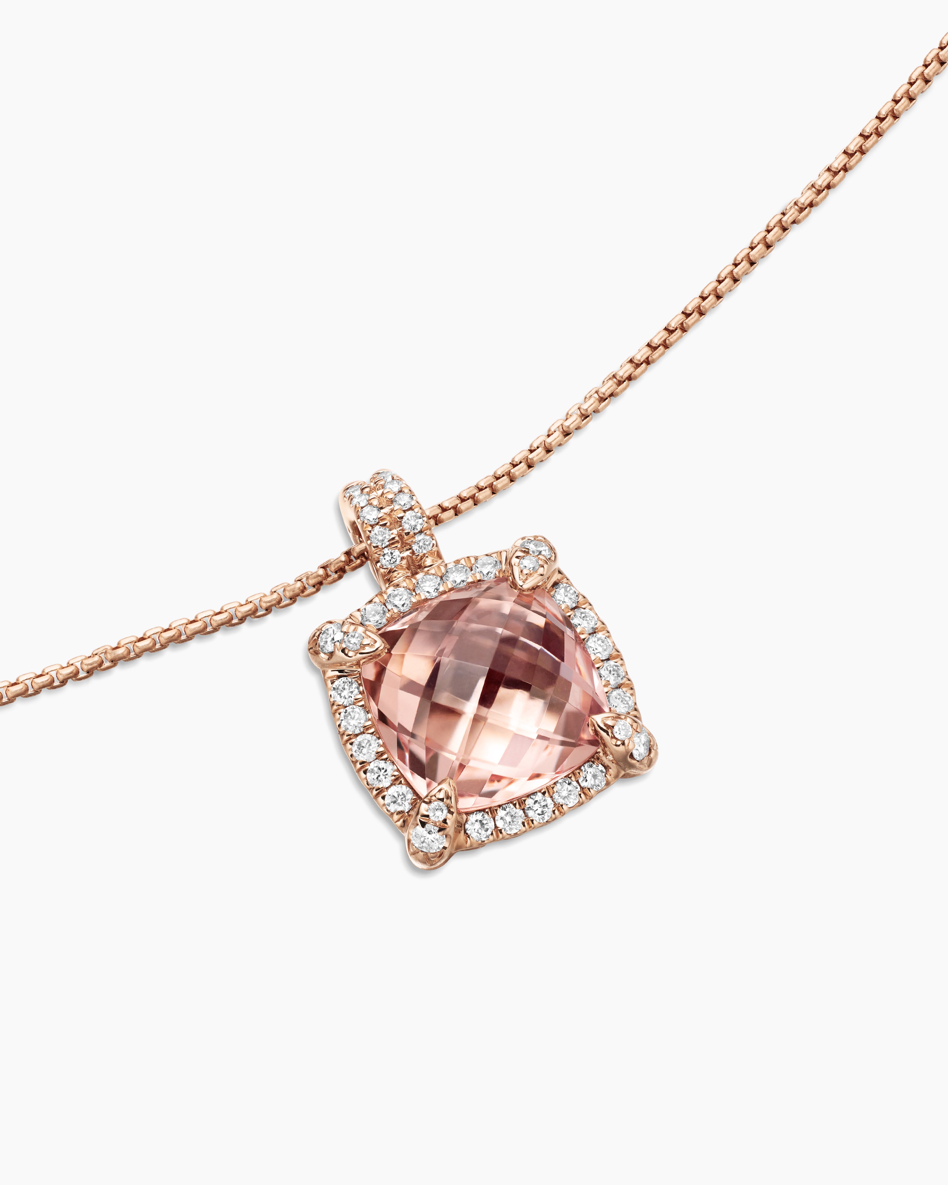 Chatelaine® Pavé Bezel Pendant Necklace 18ct Rose Gold with Morganite and Diamonds, 9mm