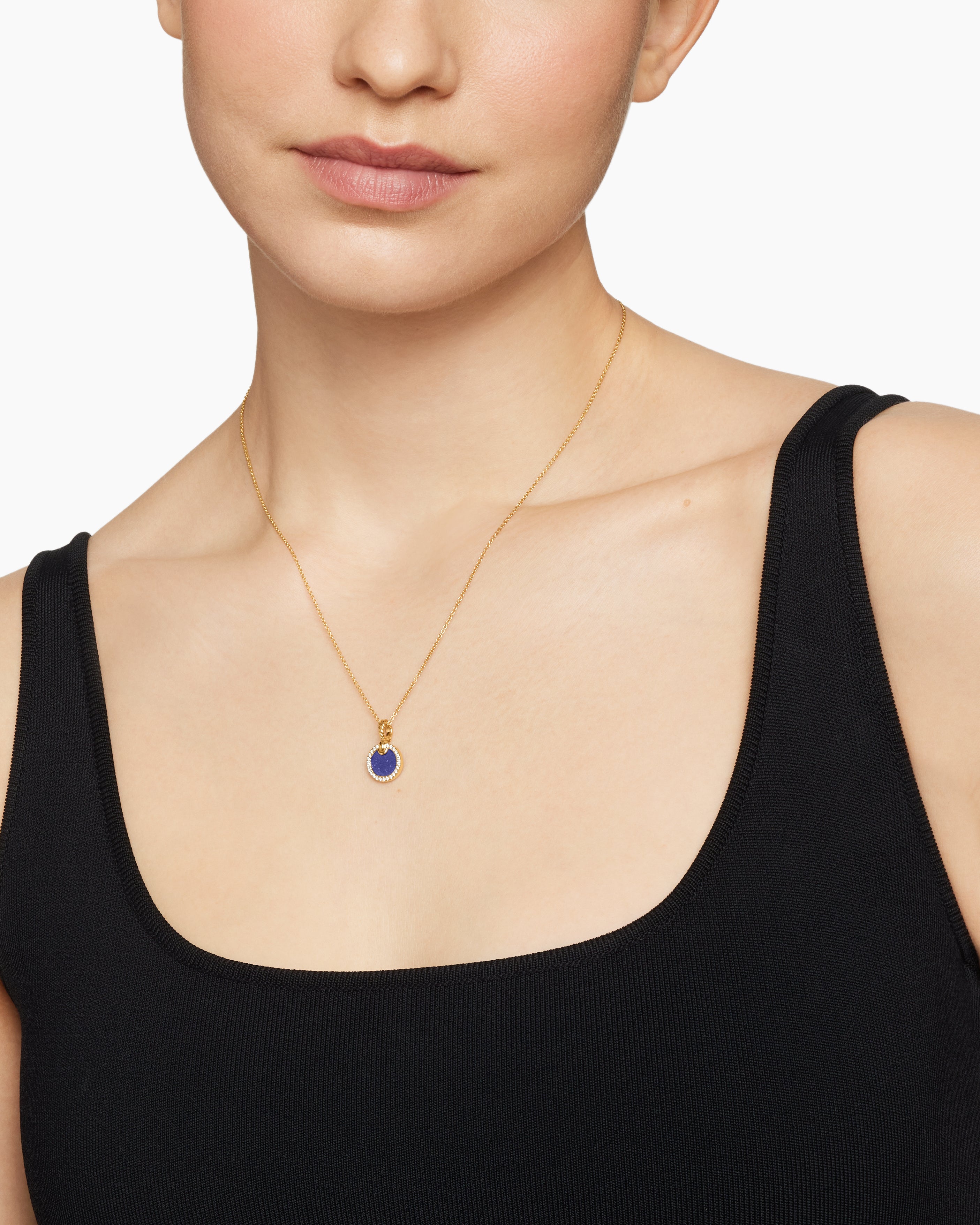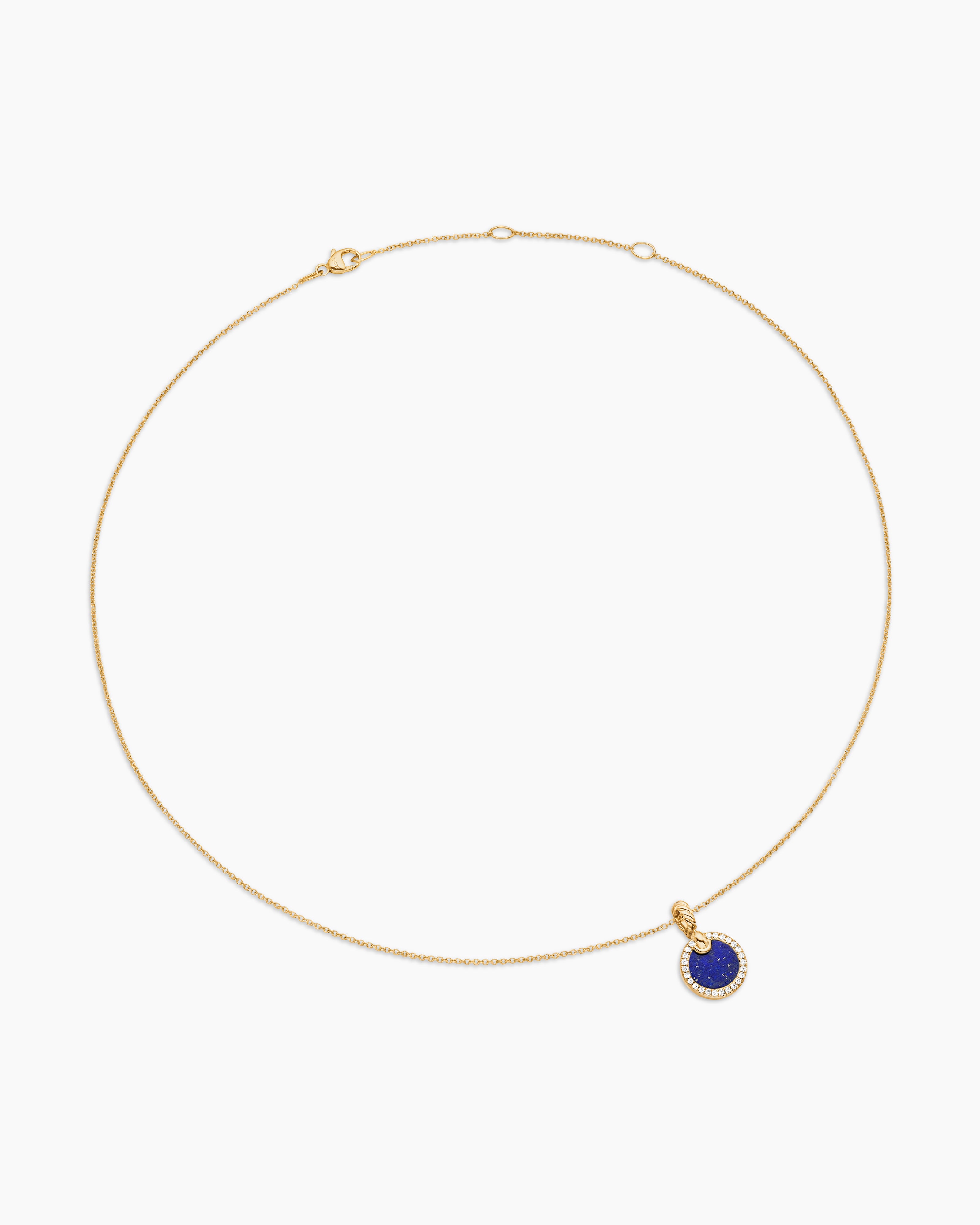 Petite DY Elements® Pendant Necklace 18ct Yellow Gold with Lapis and Diamonds, 17.8mm
