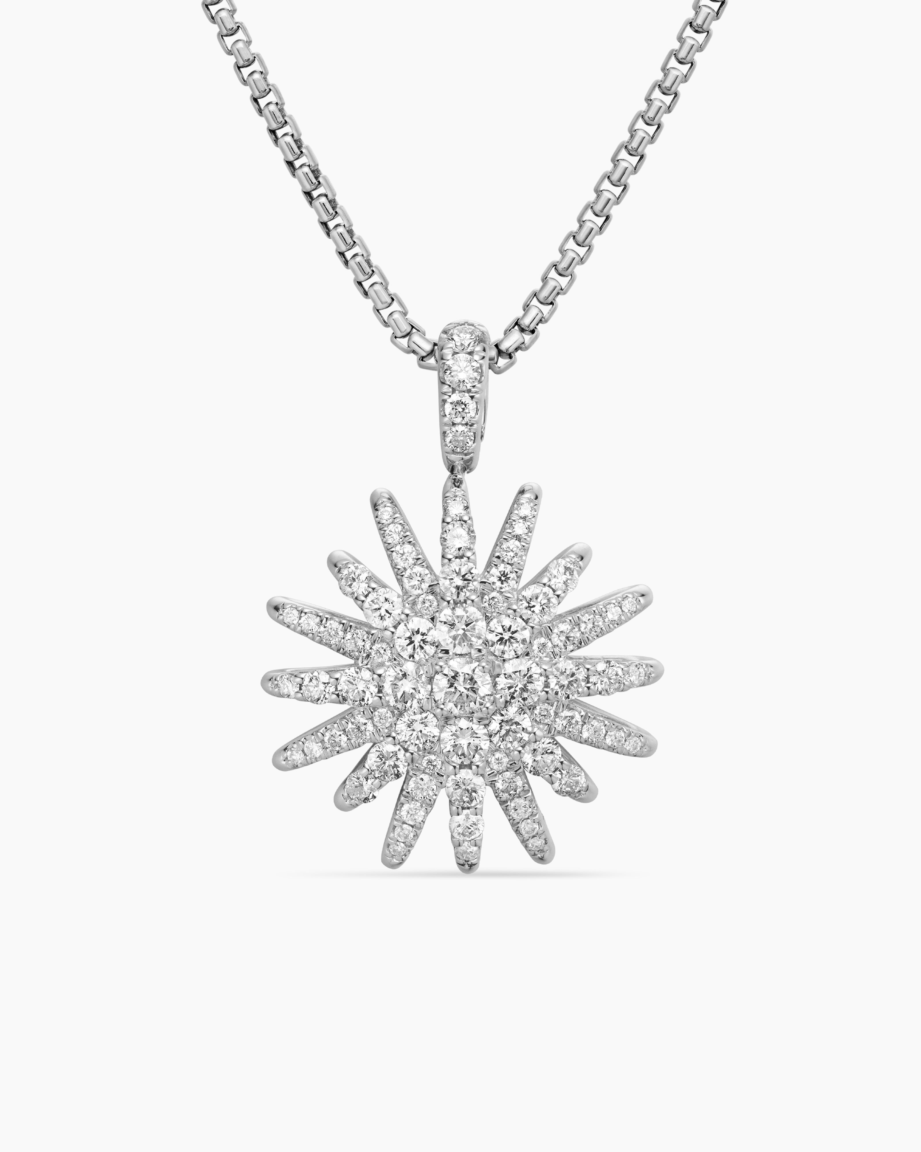 Starburst Pendant Necklace 18ct White Gold with Diamonds, 20mm