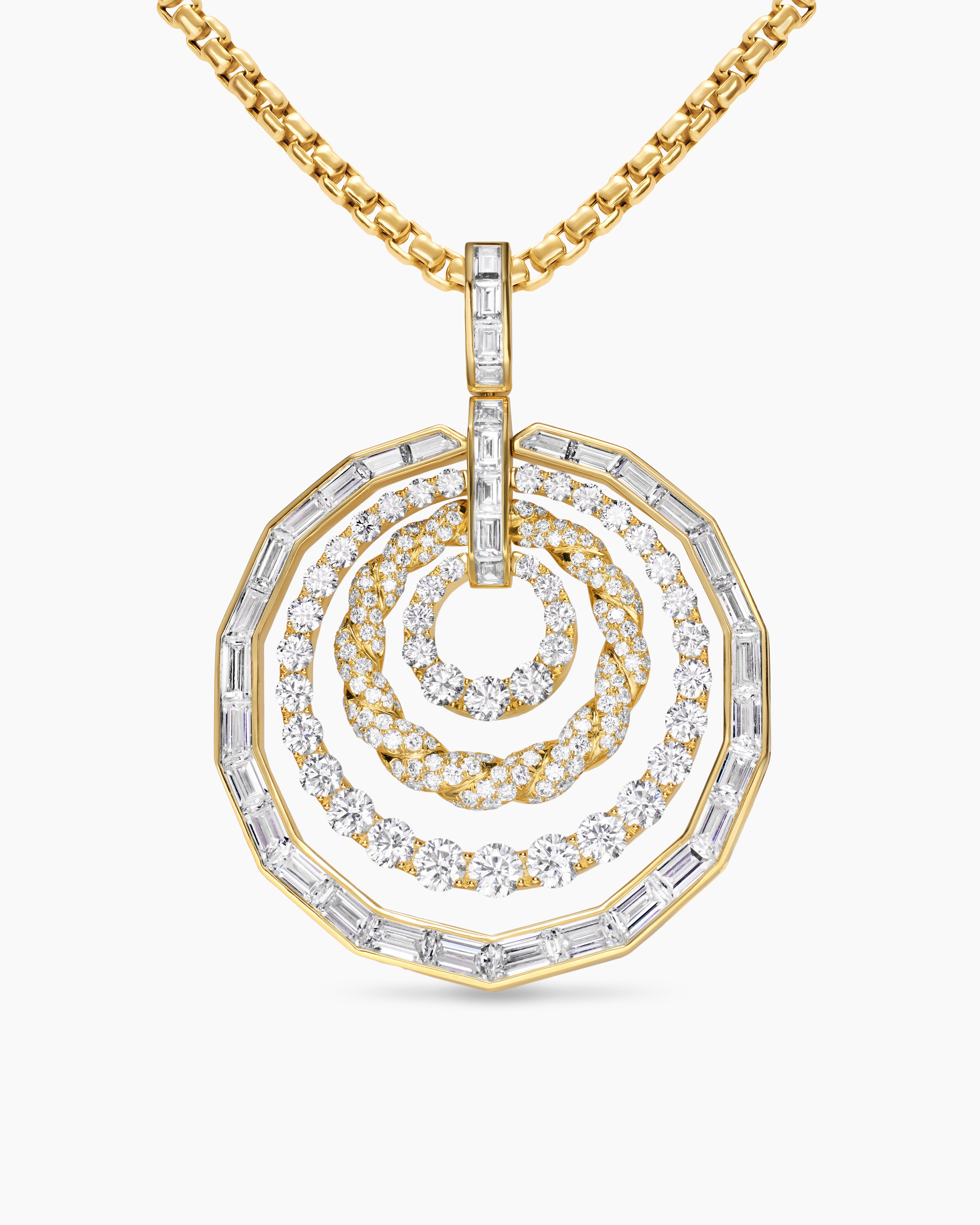 Stax Baguette and Round Dangle Pendant Yellow Gold with Diamonds