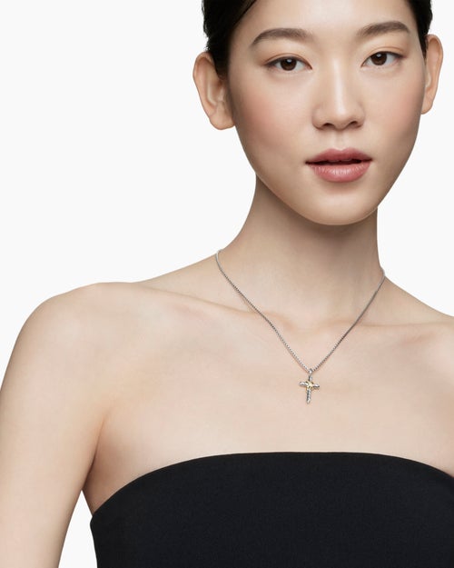 X Cross Necklace Sterling Silver with 14ct Yellow Gold and Diamonds, 31.7mm