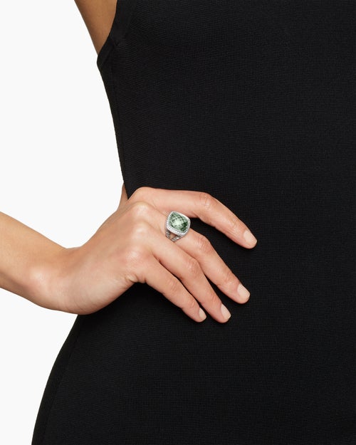 Albion® Ring Sterling Silver with Prasiolite and Diamonds, 14mm