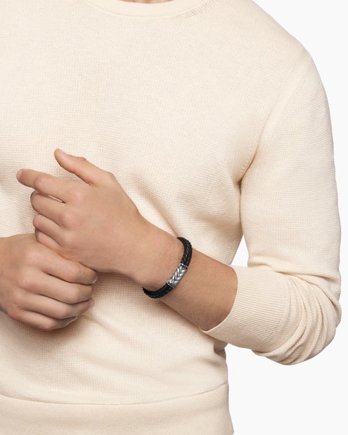 Chevron is an ancient motif with an inverted "v" shape—one of the oldest symbols in human history. David Yurman recognized something familiar in this simple form: viewed side-by-side, chevron’s zigzagging lines appear like a flattened image of our signature Cable design.