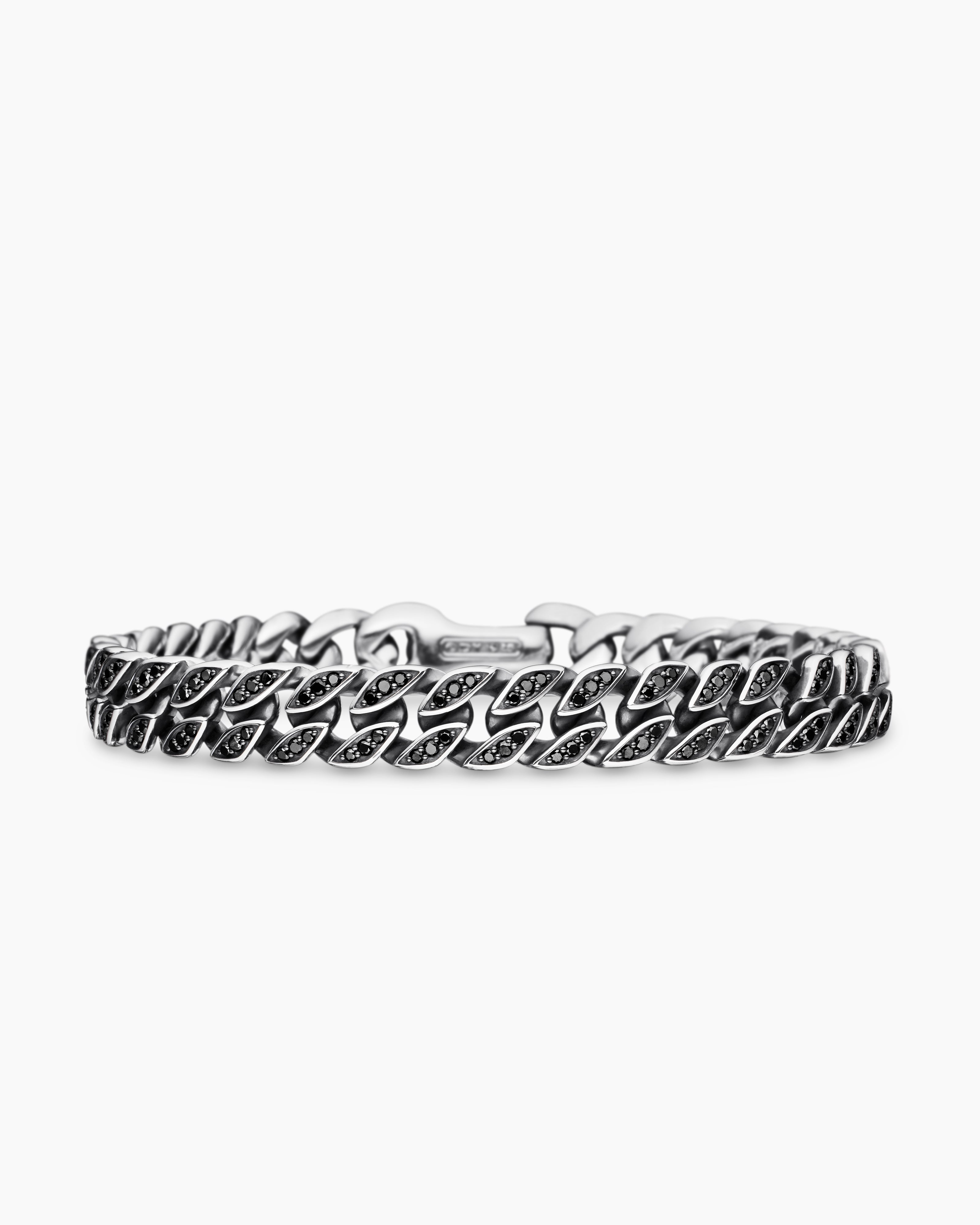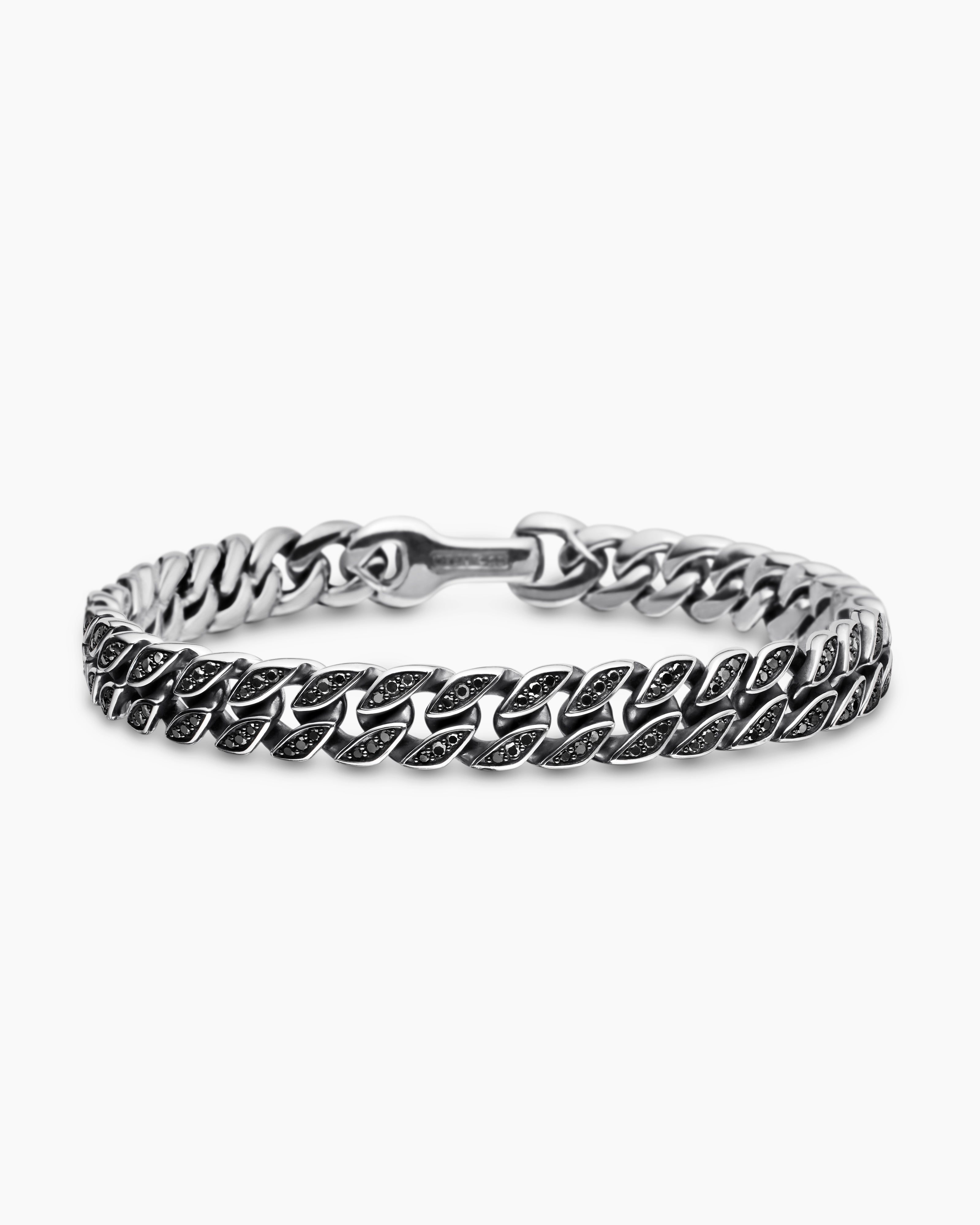 Curb Chain Bracelet Sterling Silver with Black Diamonds, 8mm