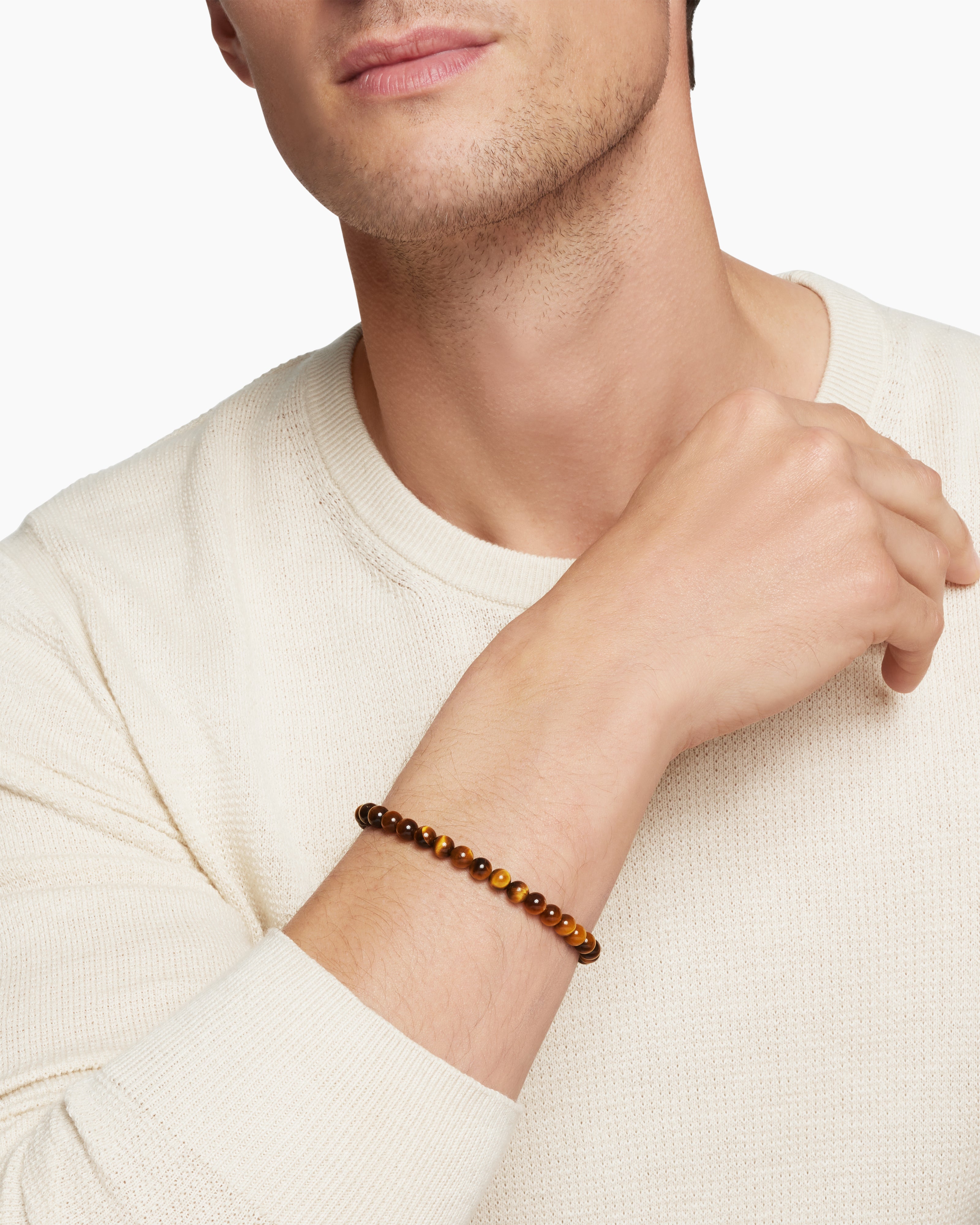 Spiritual Beads Bracelet Sterling Silver with Tiger’s Eye, 6mm
