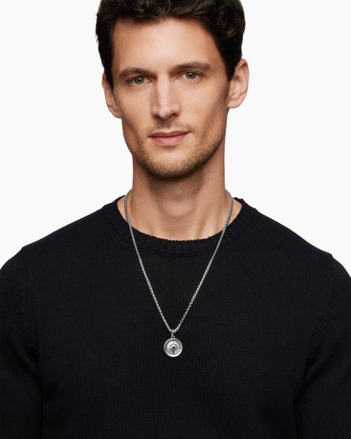 Maritime® Compass Amulet Sterling Silver with Center Black Diamond, 26.8mm