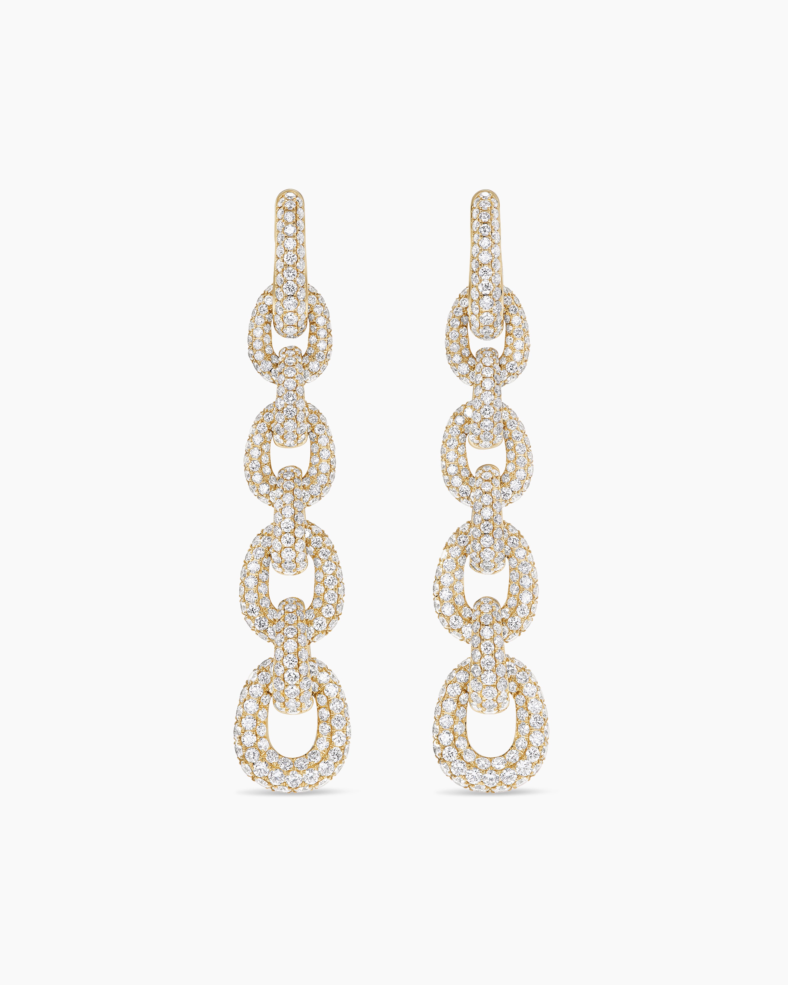 Pavé Link Chain Drop Earrings Yellow Gold with Diamonds