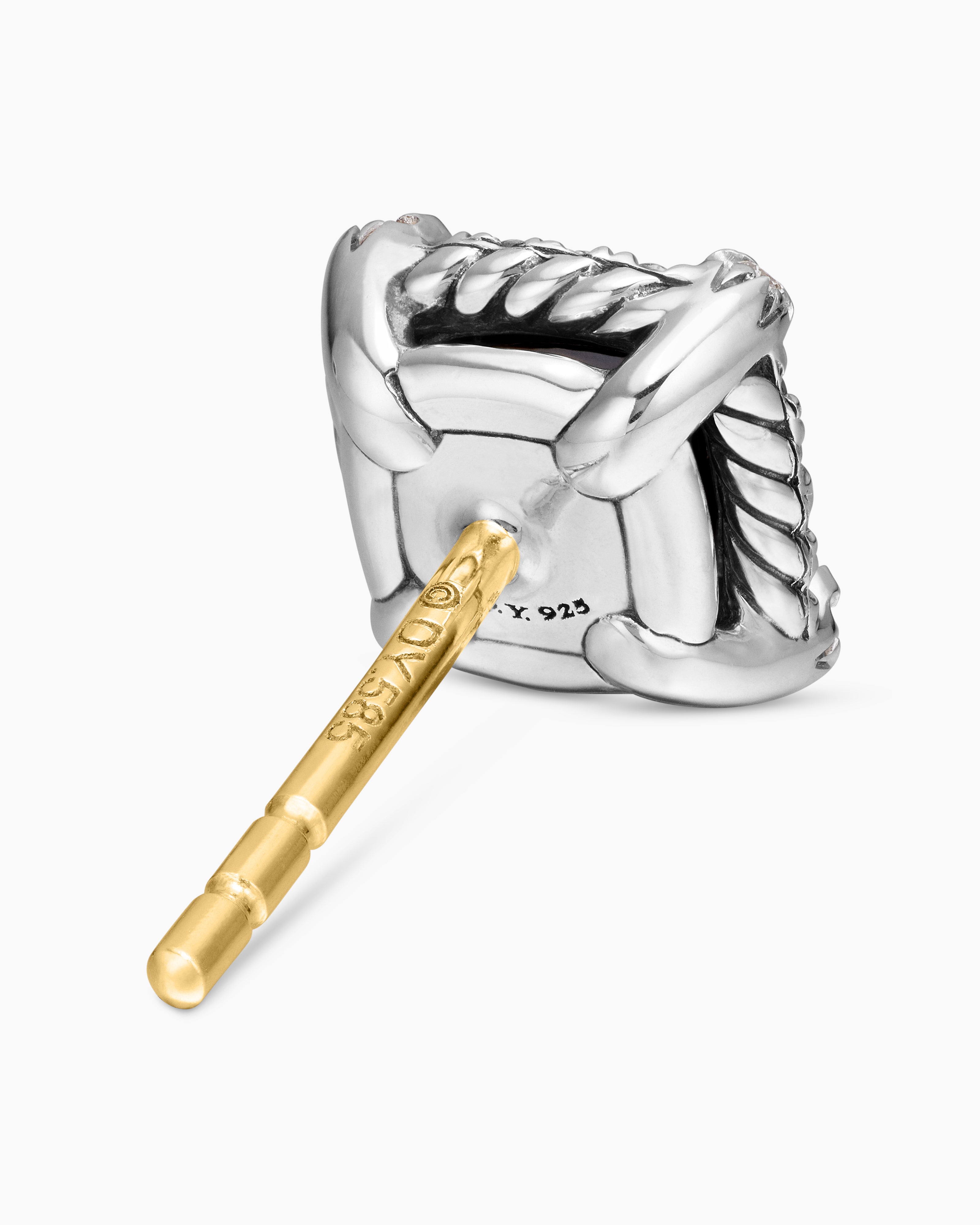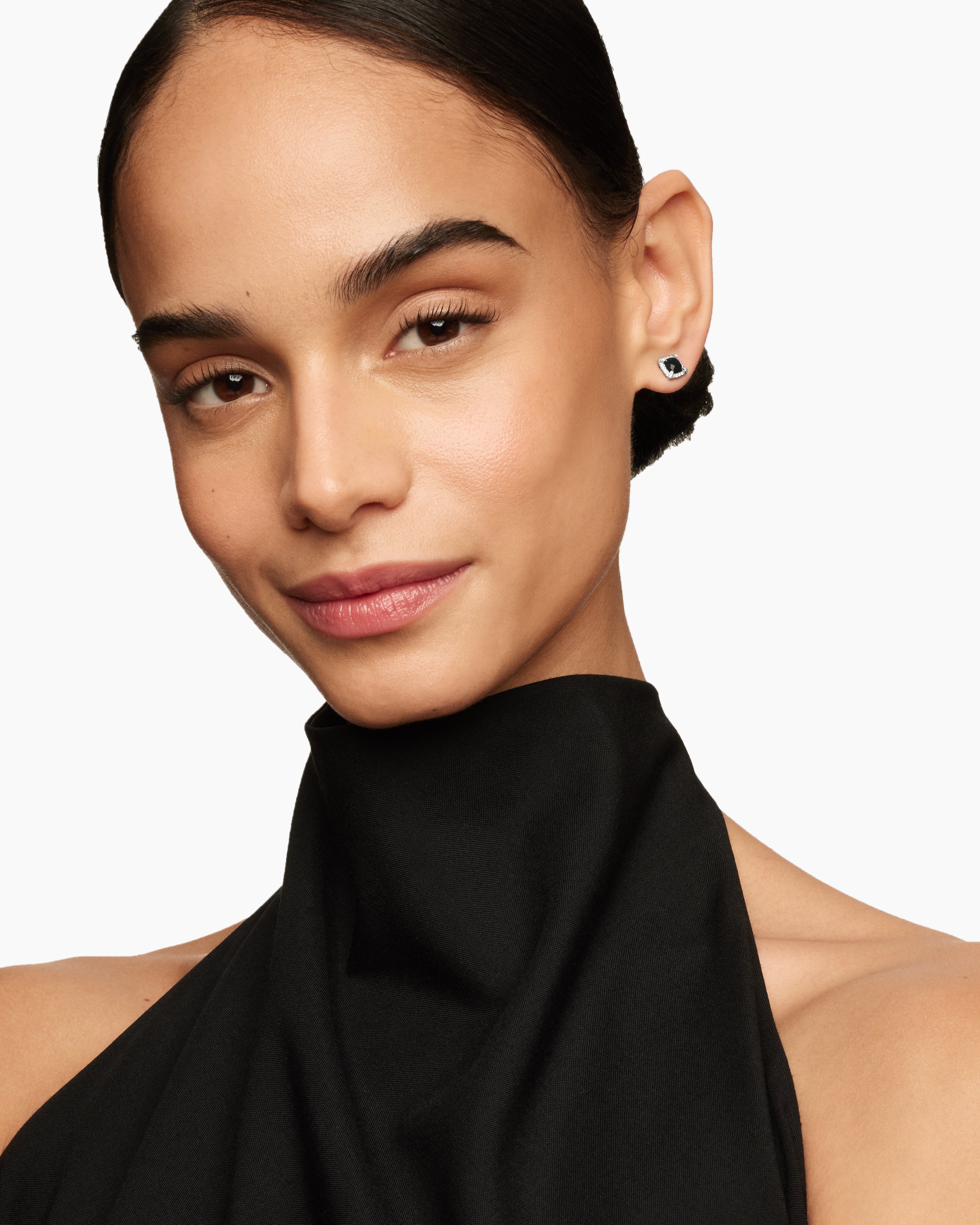 Petite Chatelaine® Pavé Bezel Stud Earrings Sterling Silver with Black Onyx and Diamonds, 5mm