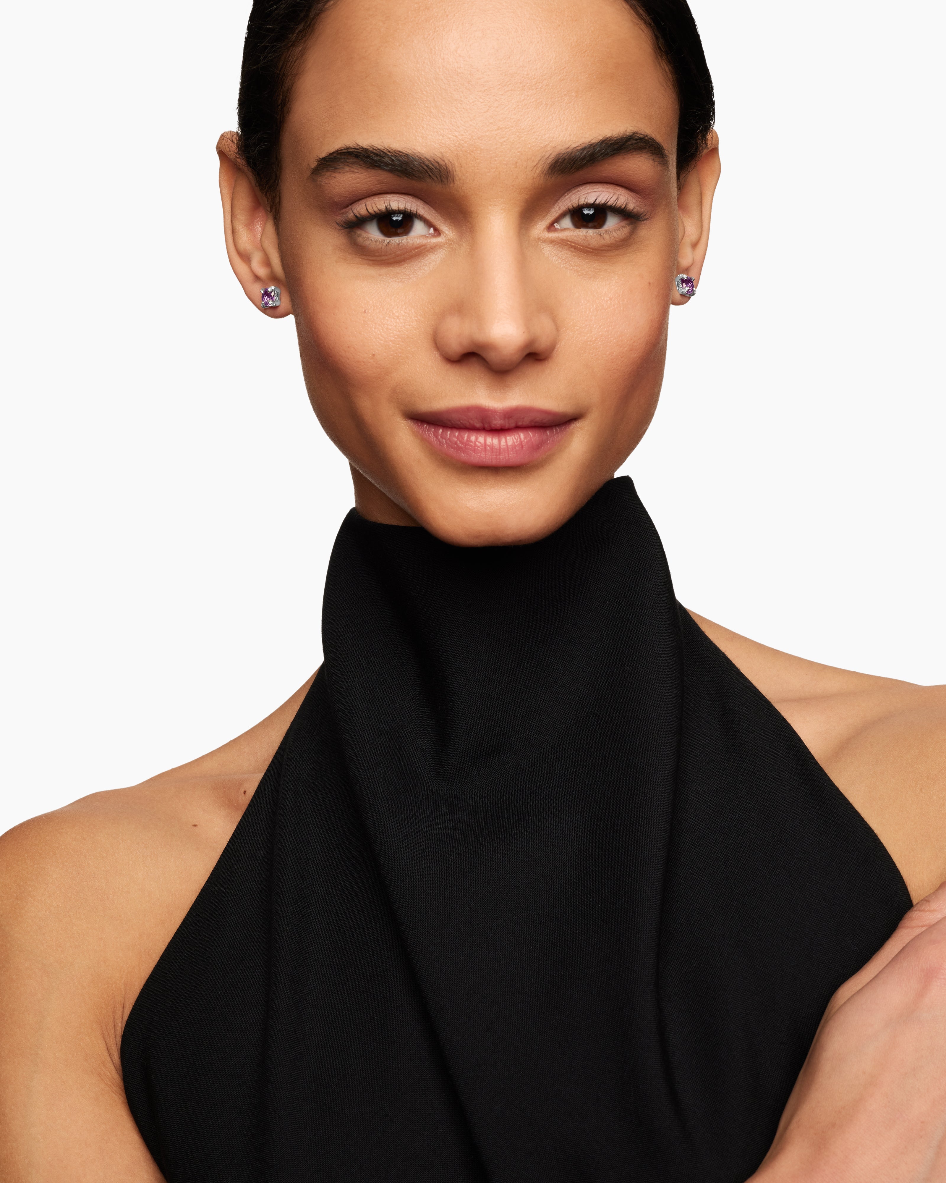 Petite Chatelaine® Stud Earrings Sterling Silver with Amethyst and Diamonds, 6mm