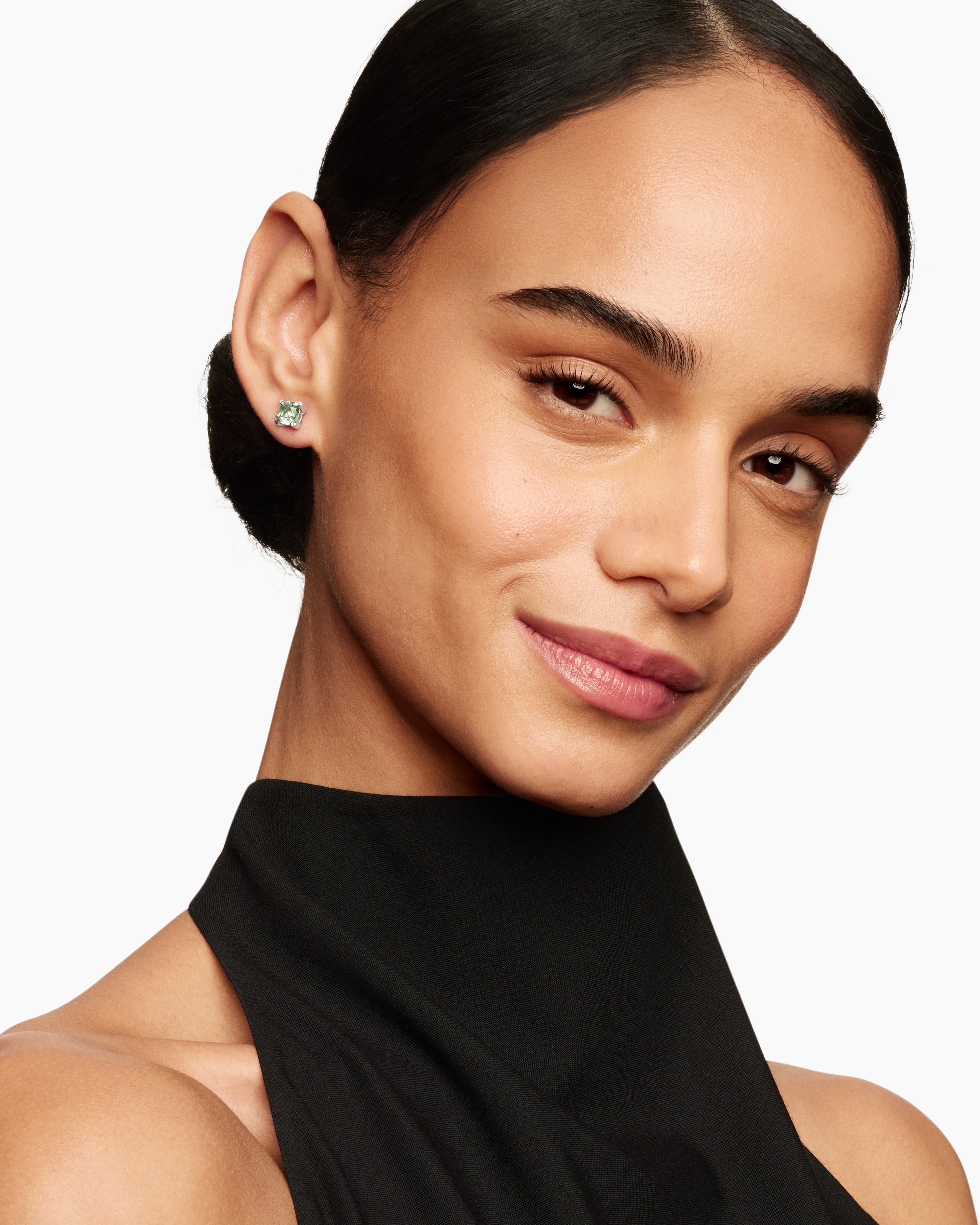 Petite Chatelaine® Stud Earrings Sterling Silver with Prasiolite and Diamonds, 6mm