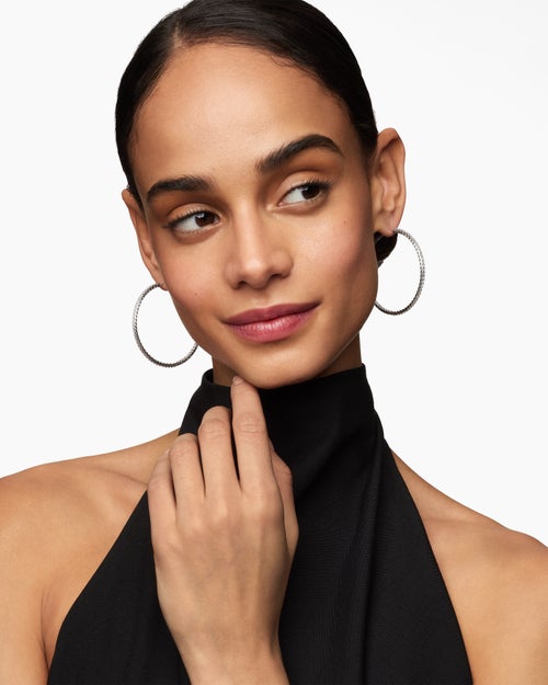 Reverse Set Pavé Hoop Earrings 18K White Gold with Diamonds, 50.5mm