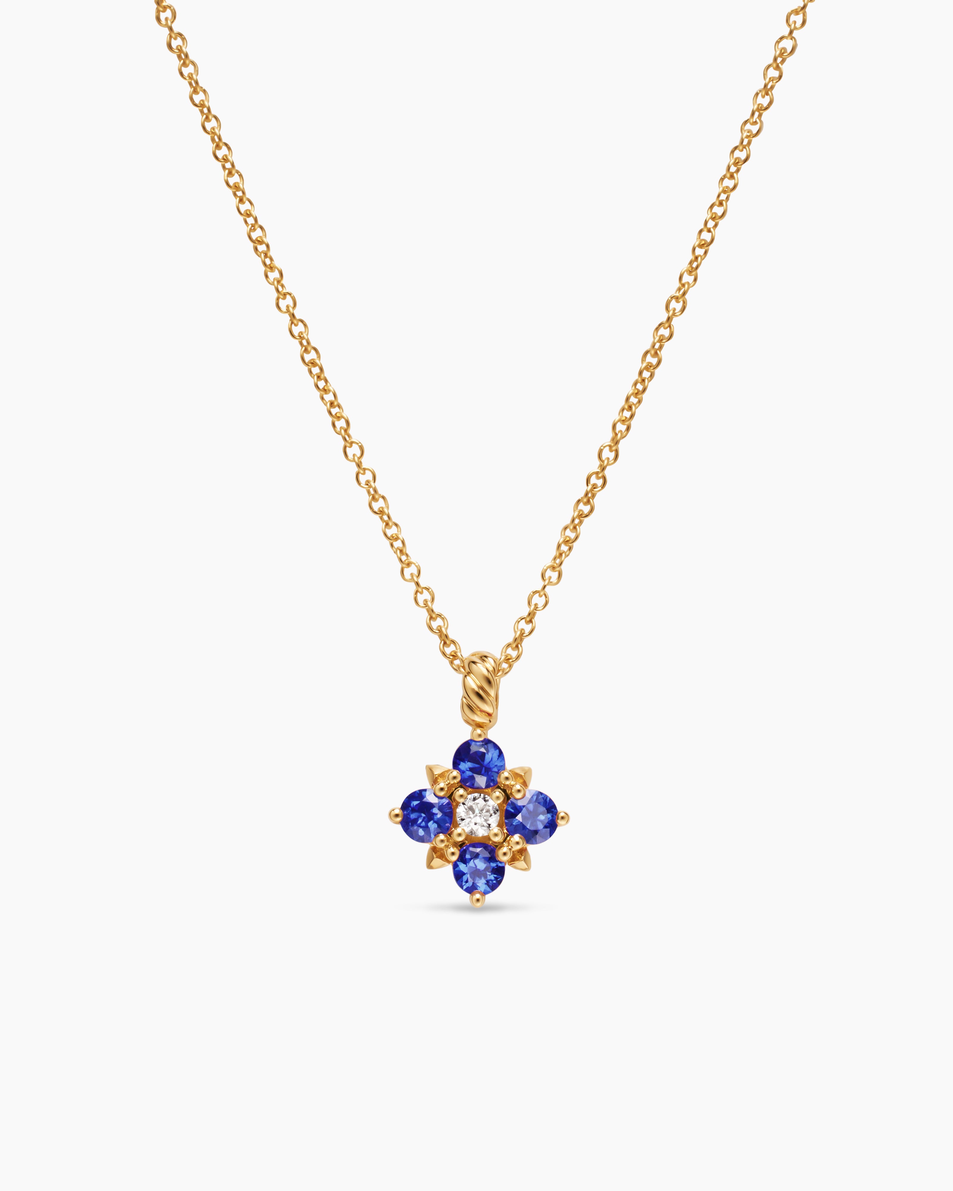 Petite Modern Renaissance® Pendant Necklace 18K Yellow Gold with Sapphires and Diamond, 9.2mm