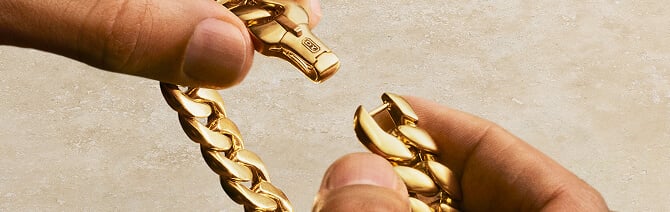 Here’s a closer look at each style, whether you’re drawn to the bold chain bracelets in our men’s collection or the handcrafted designs in our selection of women’s bracelets.