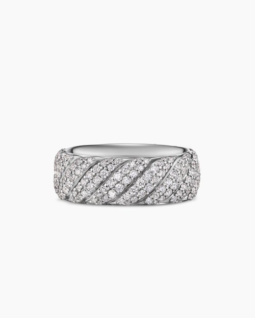 Anneau Sculpted Cable à pavé Or blanc 18 carats avec diamants, 8,5 mm
