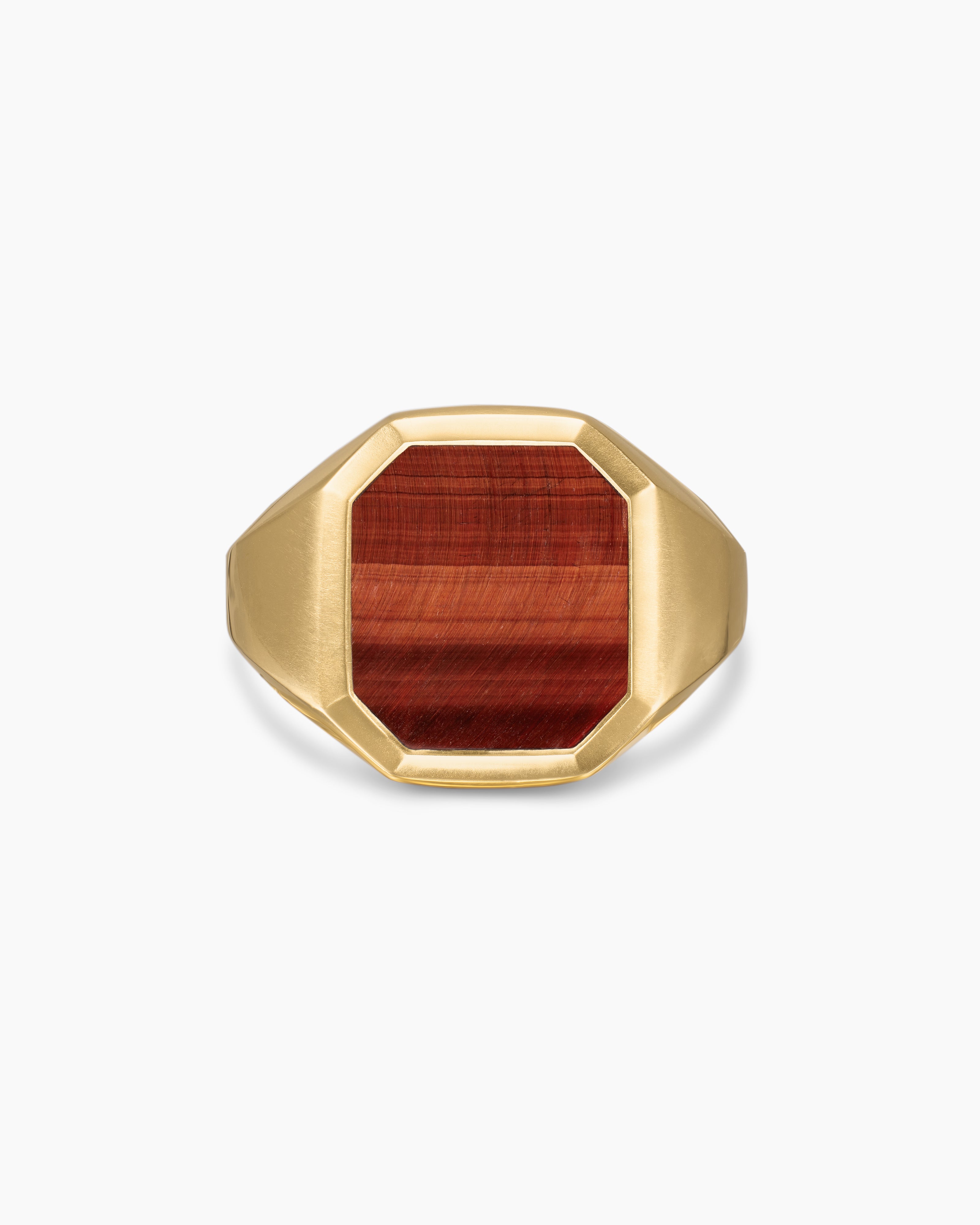 Bague chevalière Streamline® Or jaune 18 carats avec œil-de-tigre rouge, 18 mm