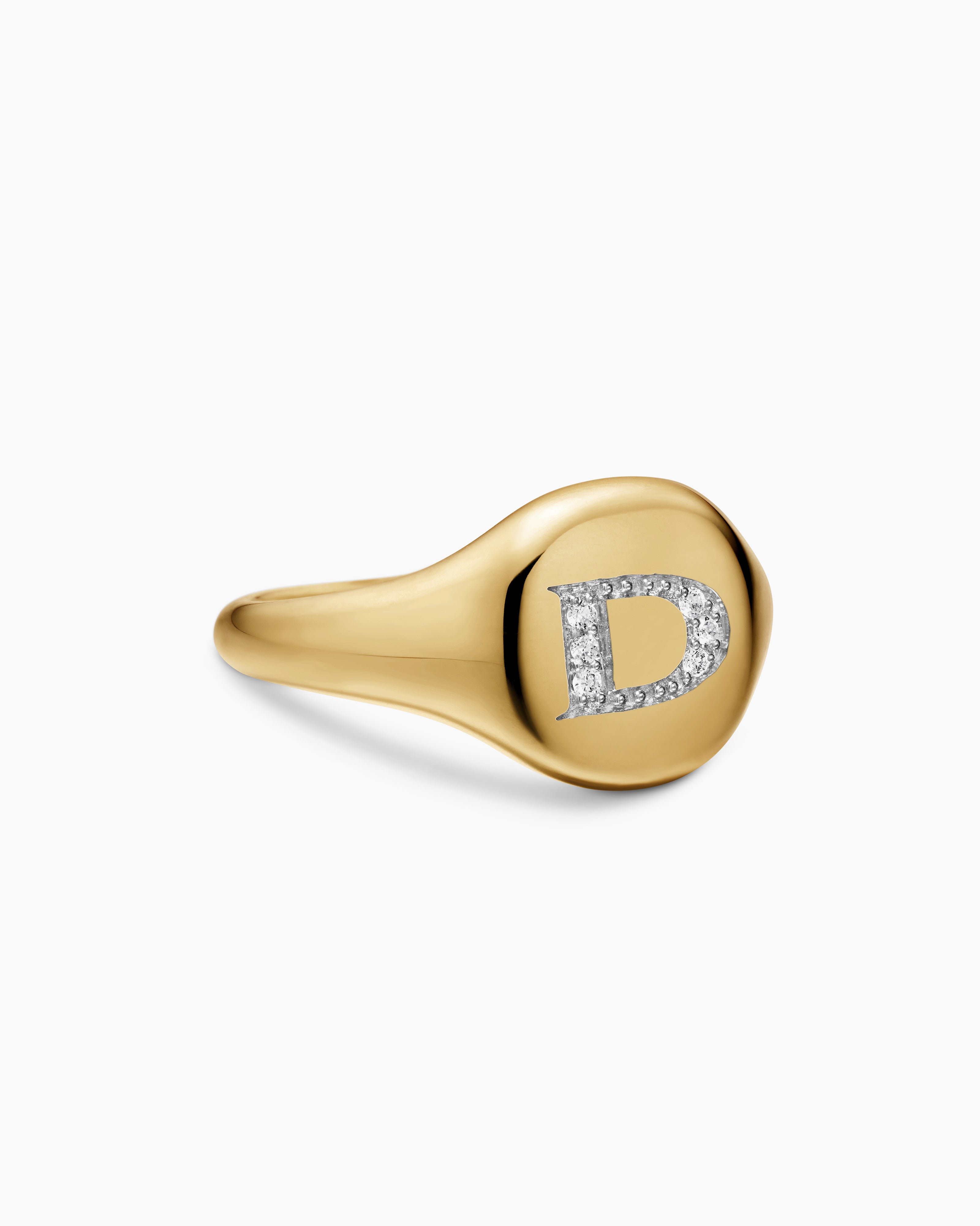 Bague pour auriculaire avec initiales DY Or jaune 18 carats avec diamants formant un D, 9,8 mm