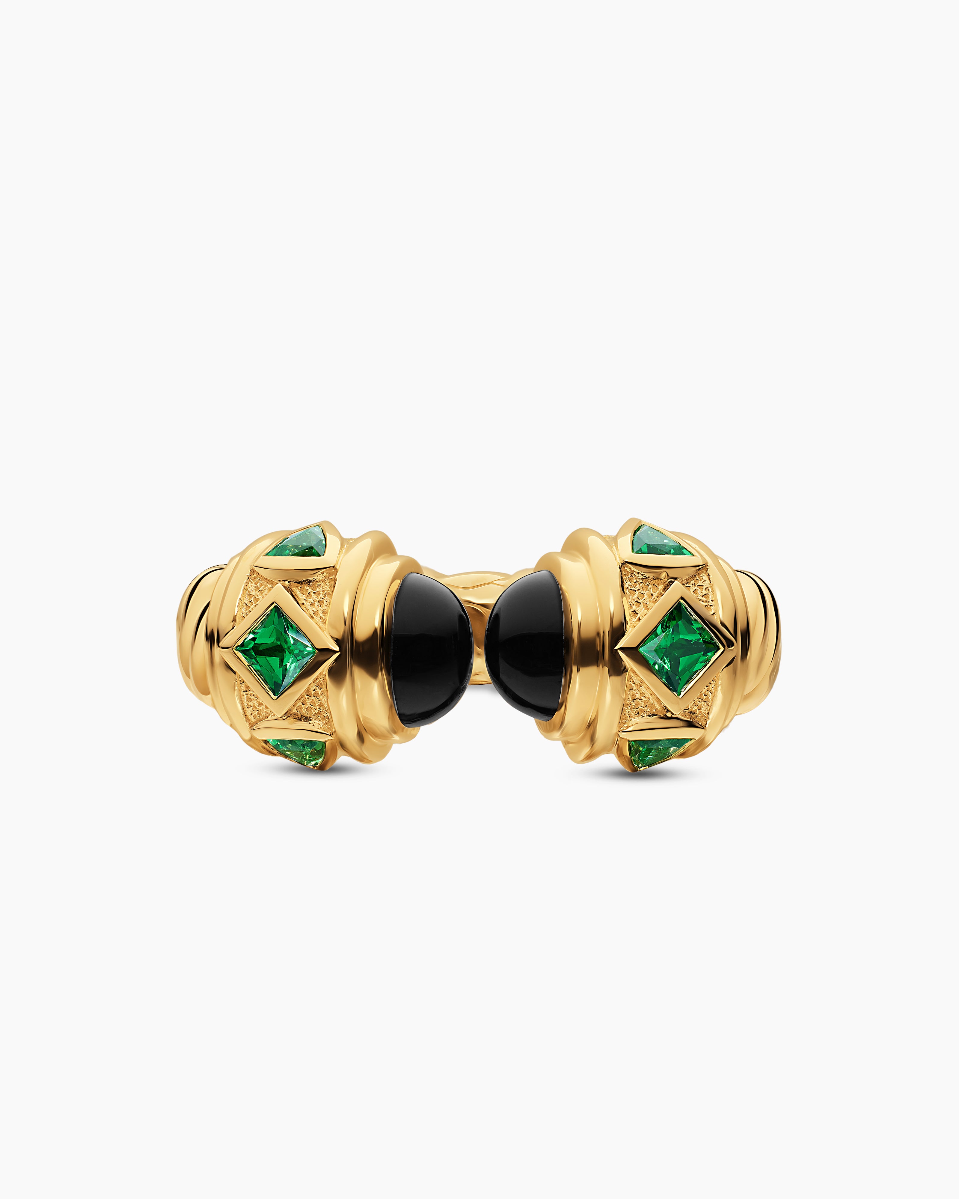Bague de couleur Renaissance® Or jaune 18 carats avec onyx noir et tsavorites, 9,9 mm