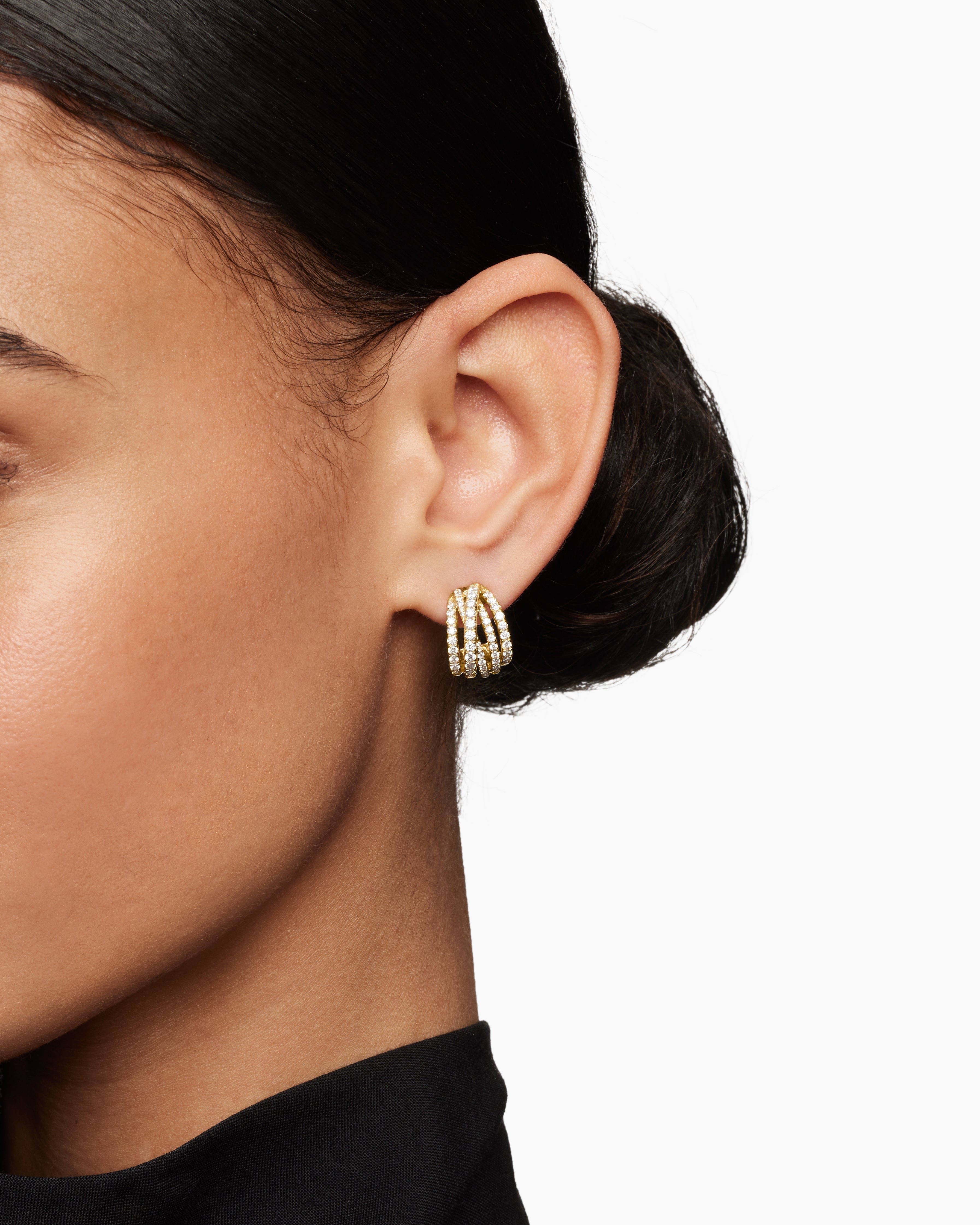 Boucles d’oreilles crevette Crossover à pavé Or jaune 18 carats avec diamants, 15,8 mm
