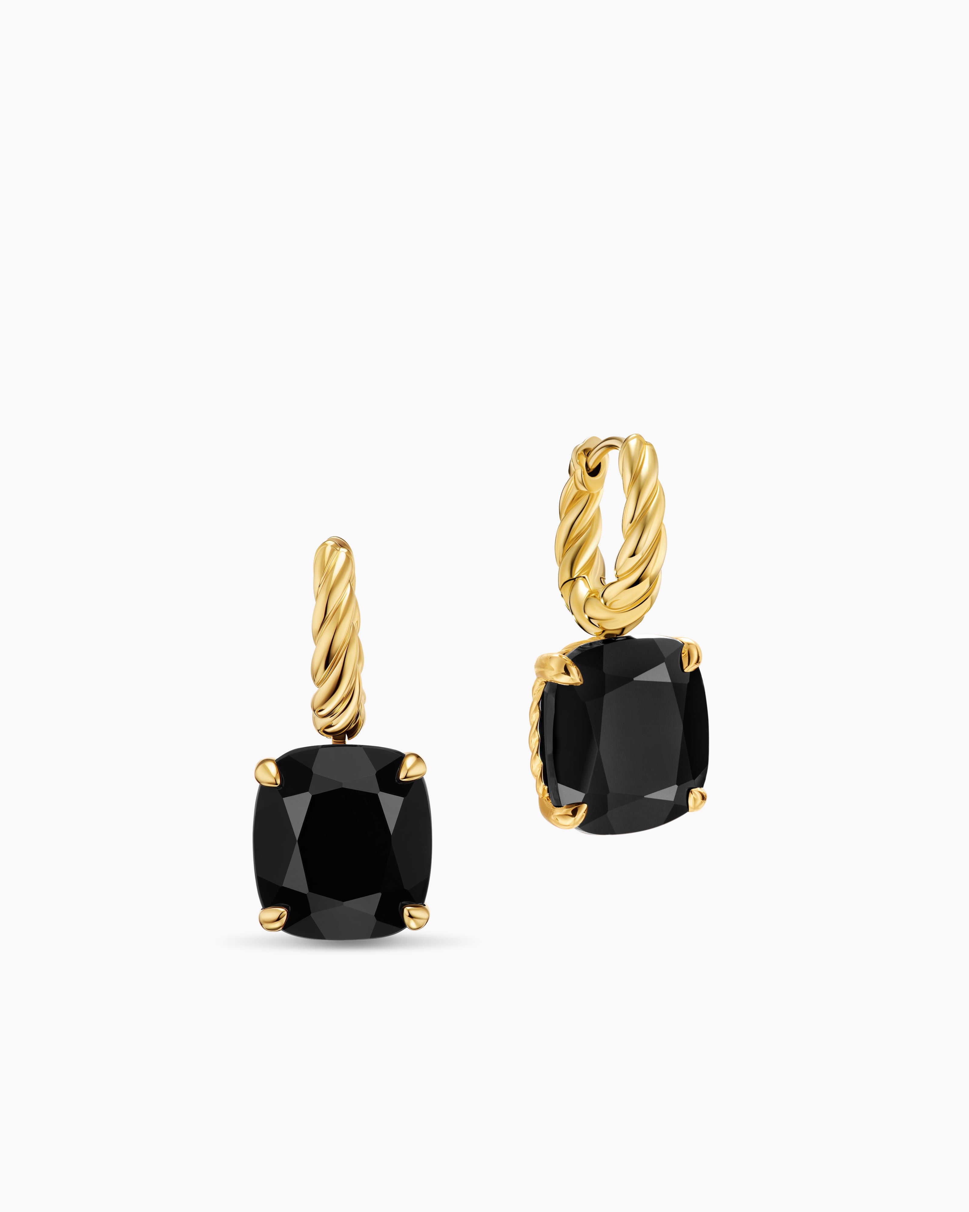 Boucles d’oreilles pendantes Marbella Or jaune 18 carats avec onyx noir, 11 mm