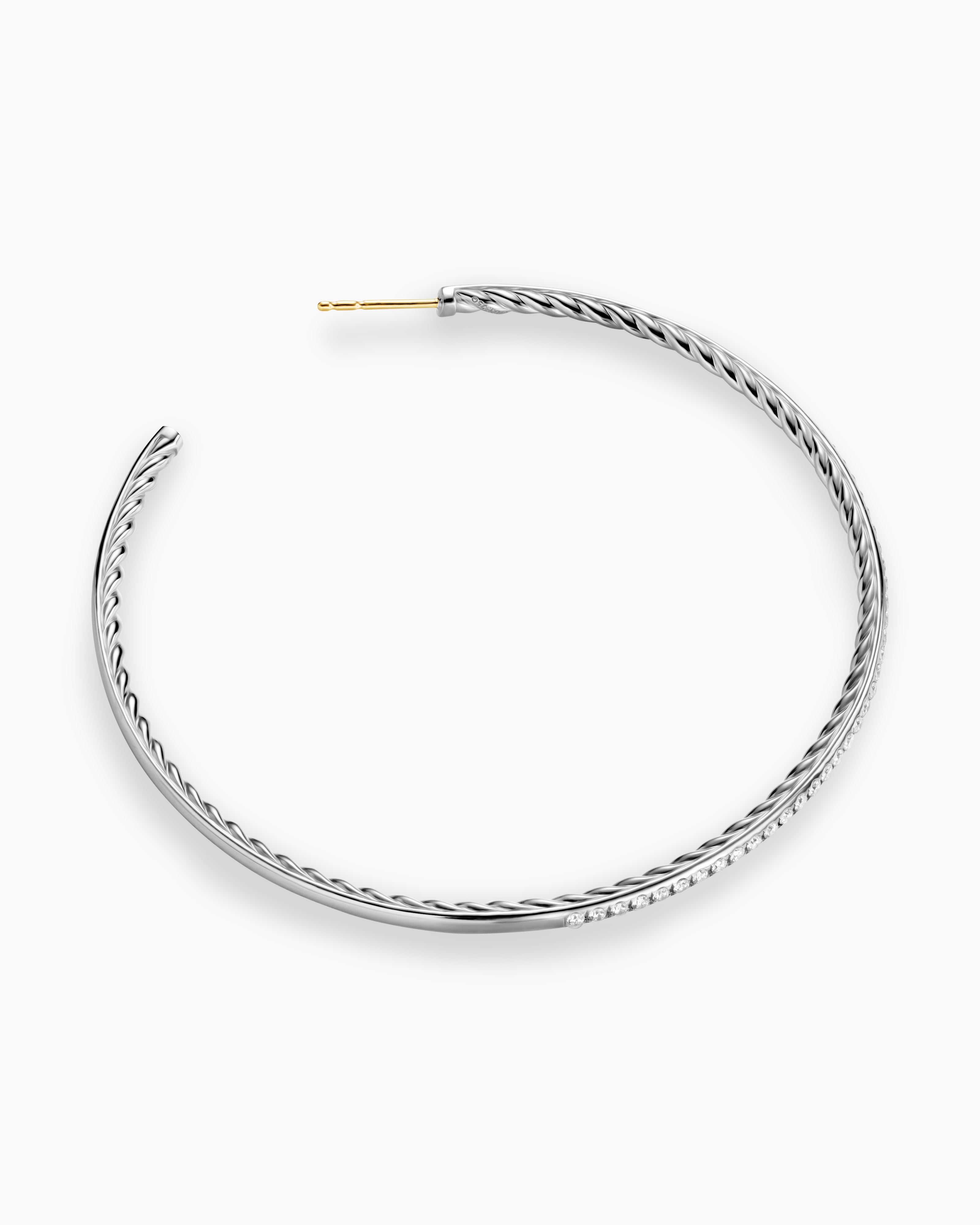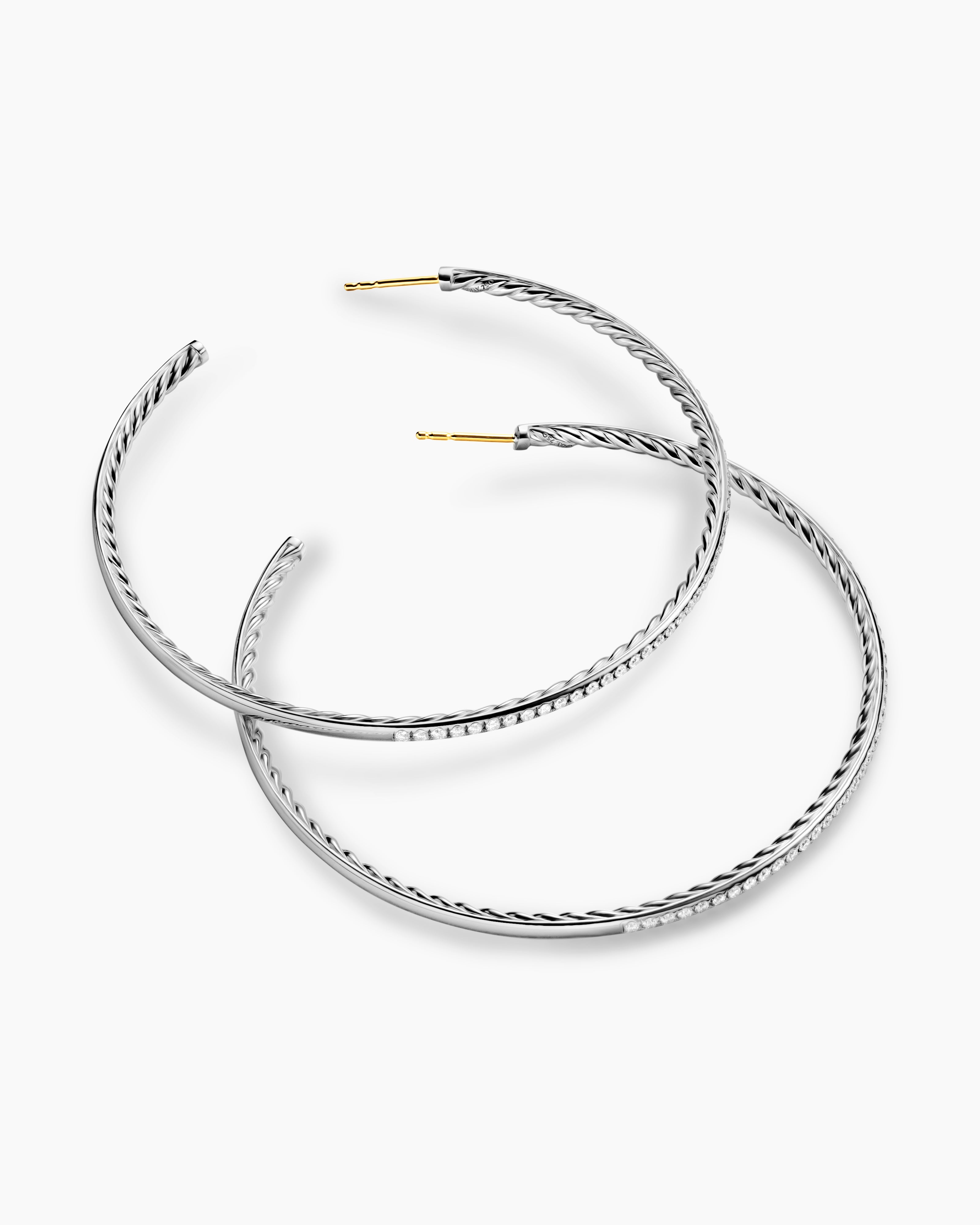 Créoles à pavé en argent sterling avec diamants, 63,5 mm | David Yurman Canada
