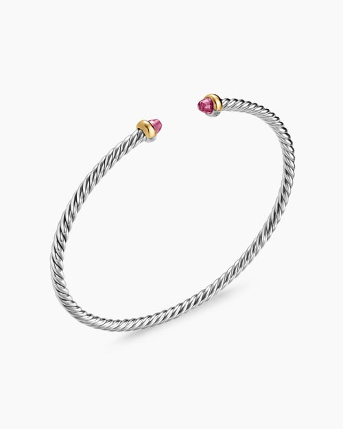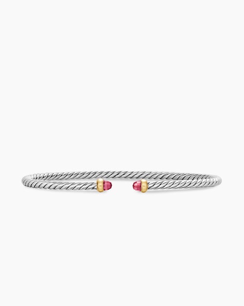 Bracelet Micro Cable Flex® Argent sterling avec or jaune 14 carats et tourmalines roses, 2,6 mm