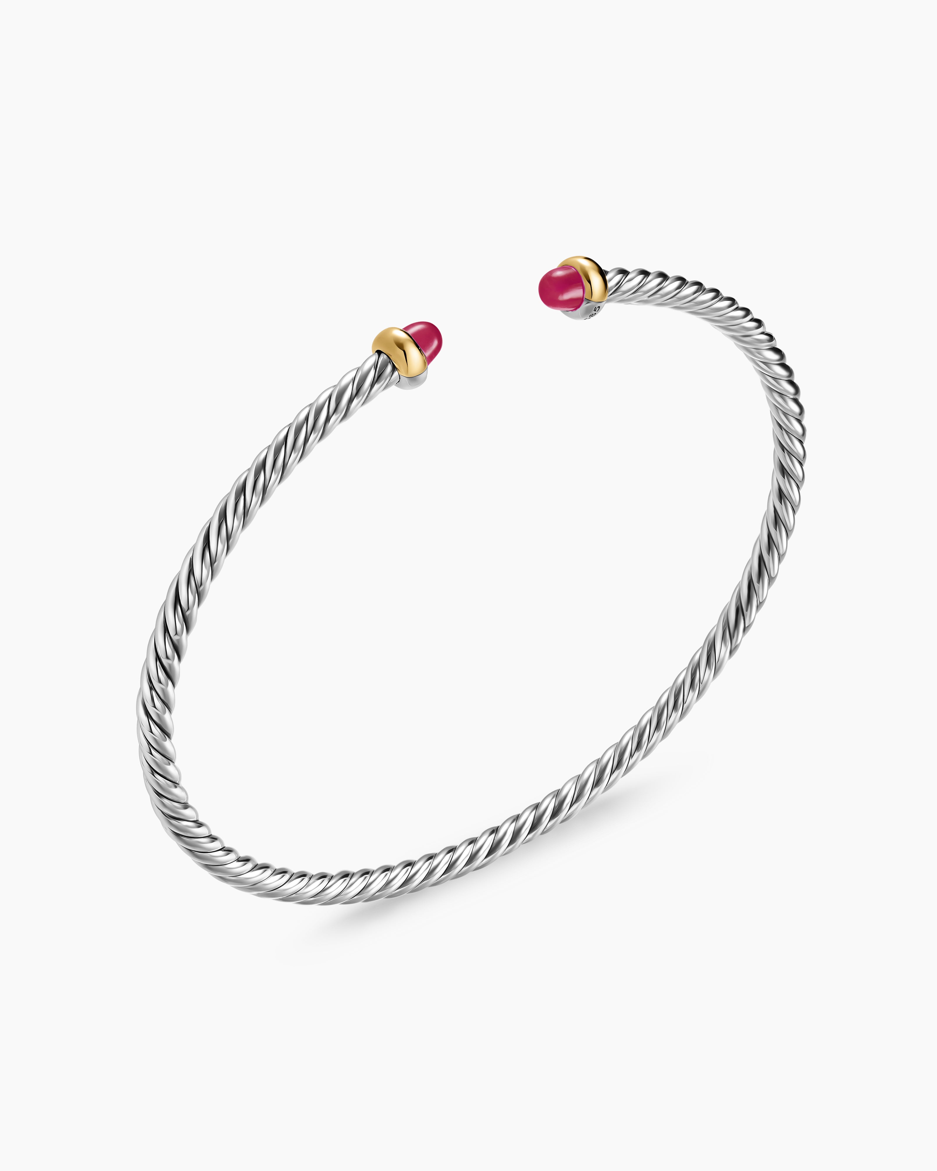 Bracelet Micro Cable Flex® Argent sterling avec or jaune 14 carats et rubis, 2,6 mm