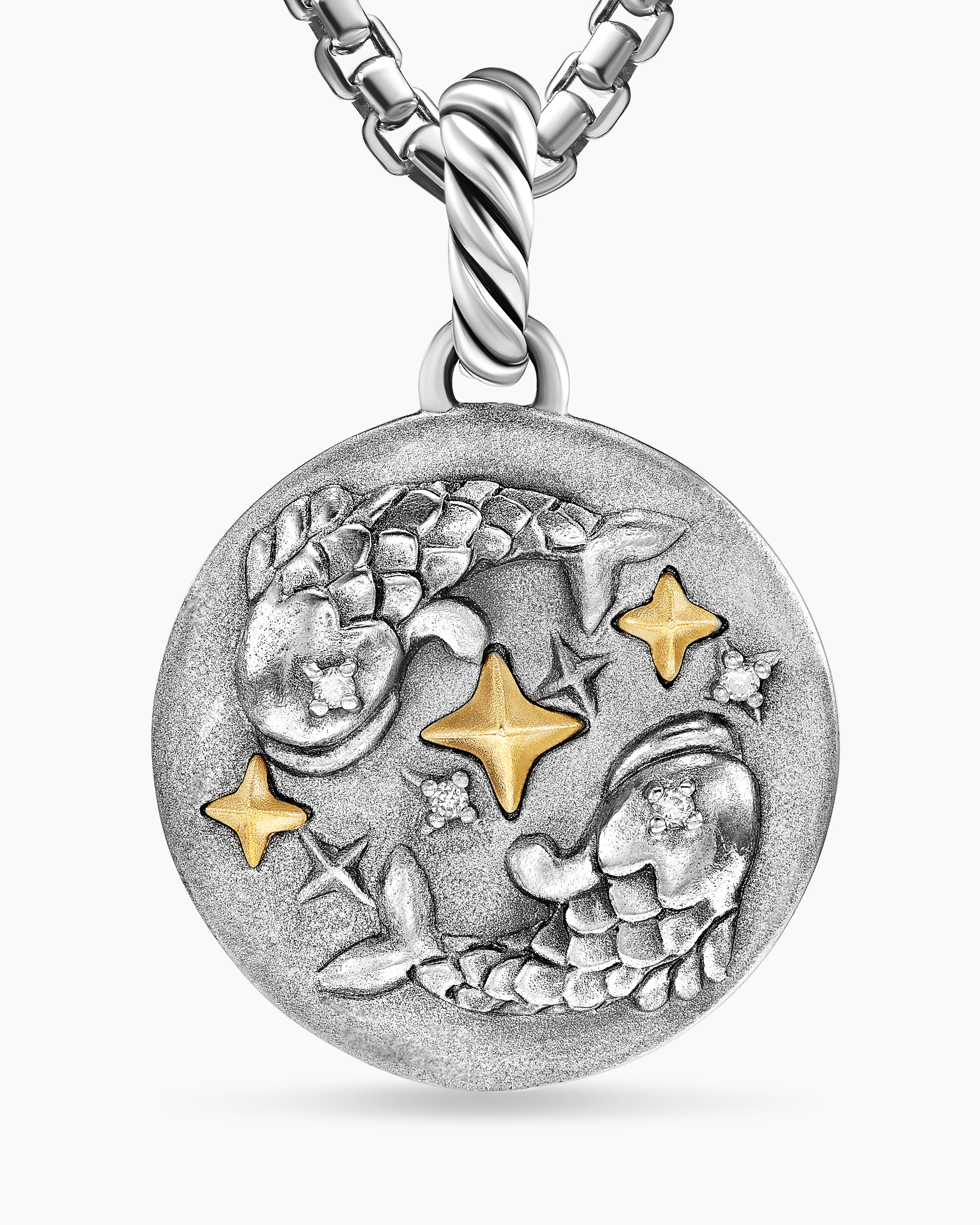 Amulette Poisson Argent sterling avec or jaune 18 carats et diamants, 19 mm