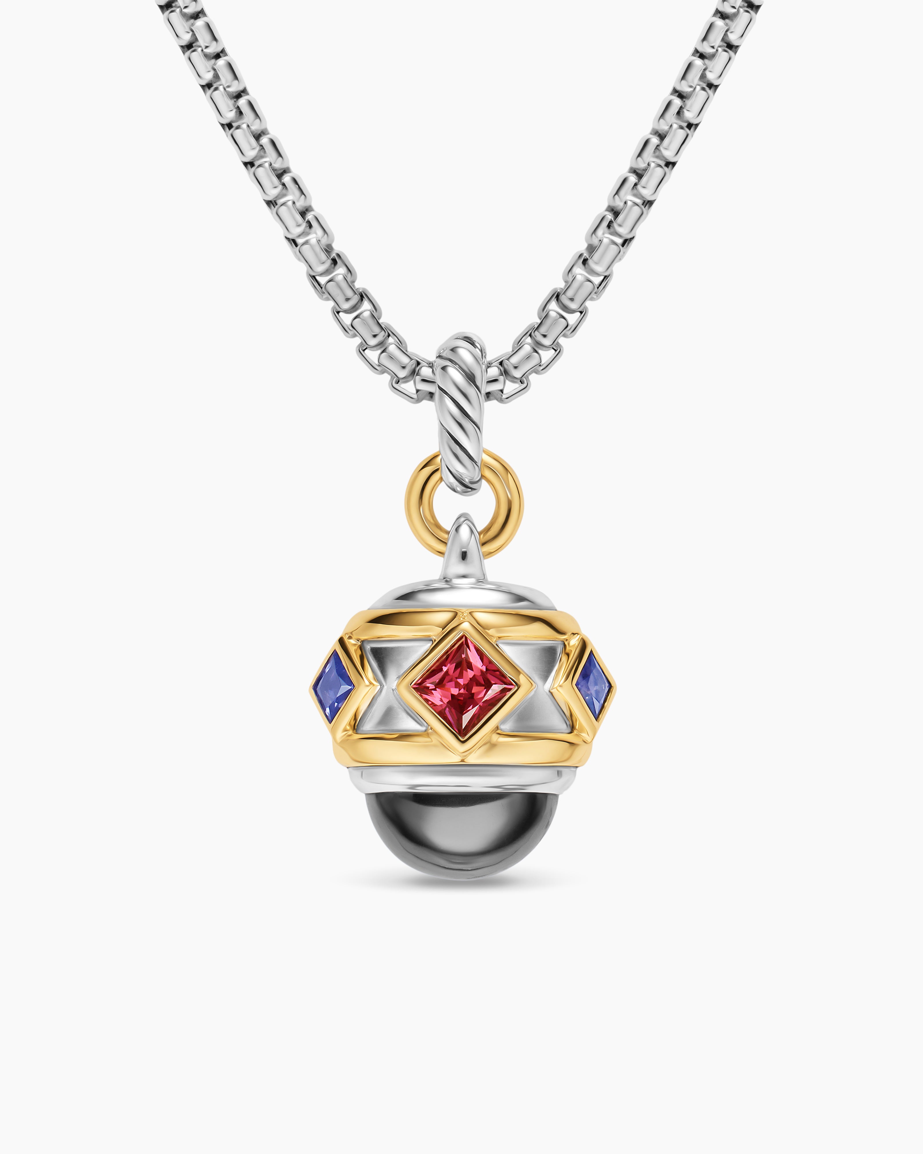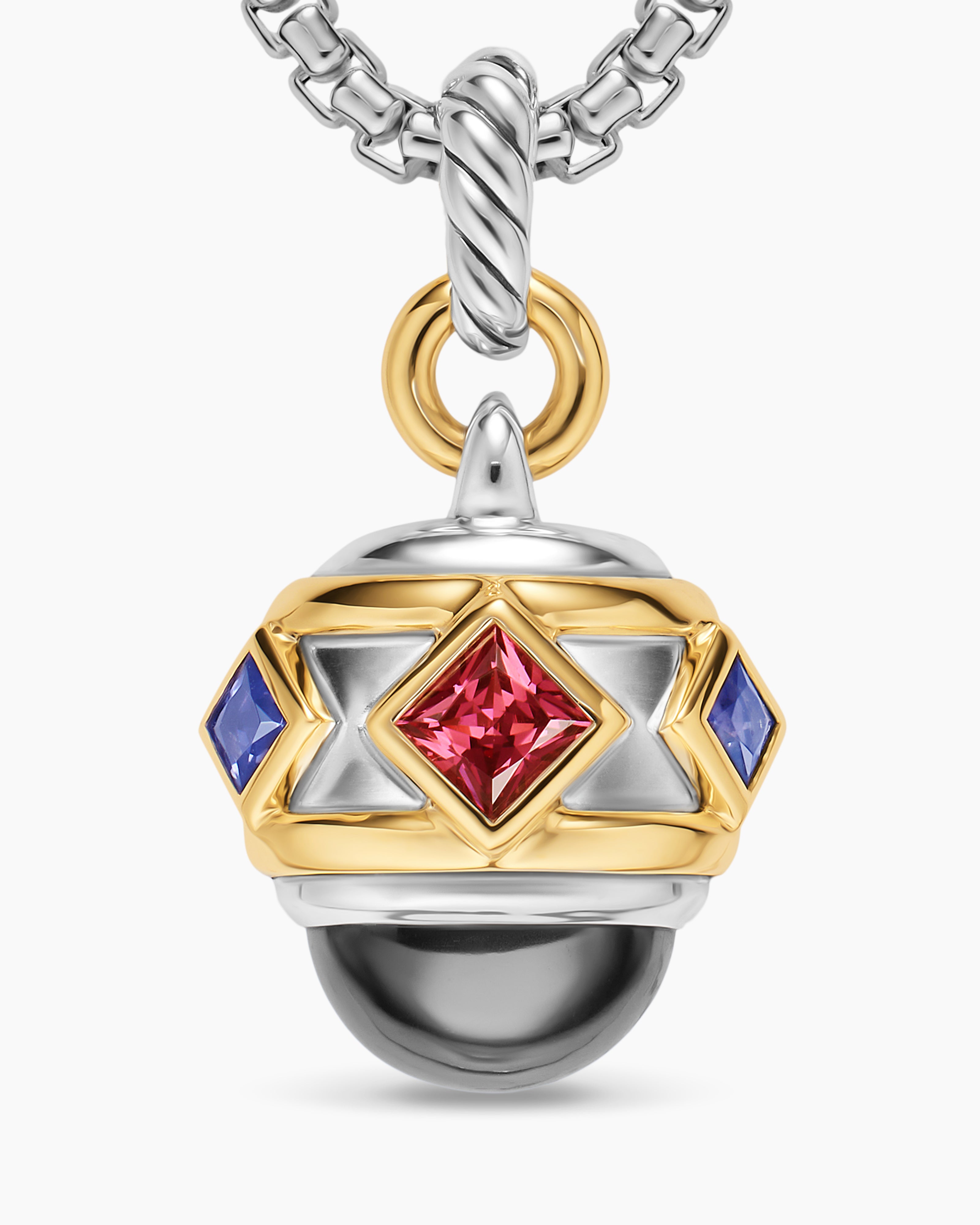 Amulette Renaissance® Argent sterling avec or jaune 14 carats, hématine, grenat rhodolite et iolite, 19,8 mm
