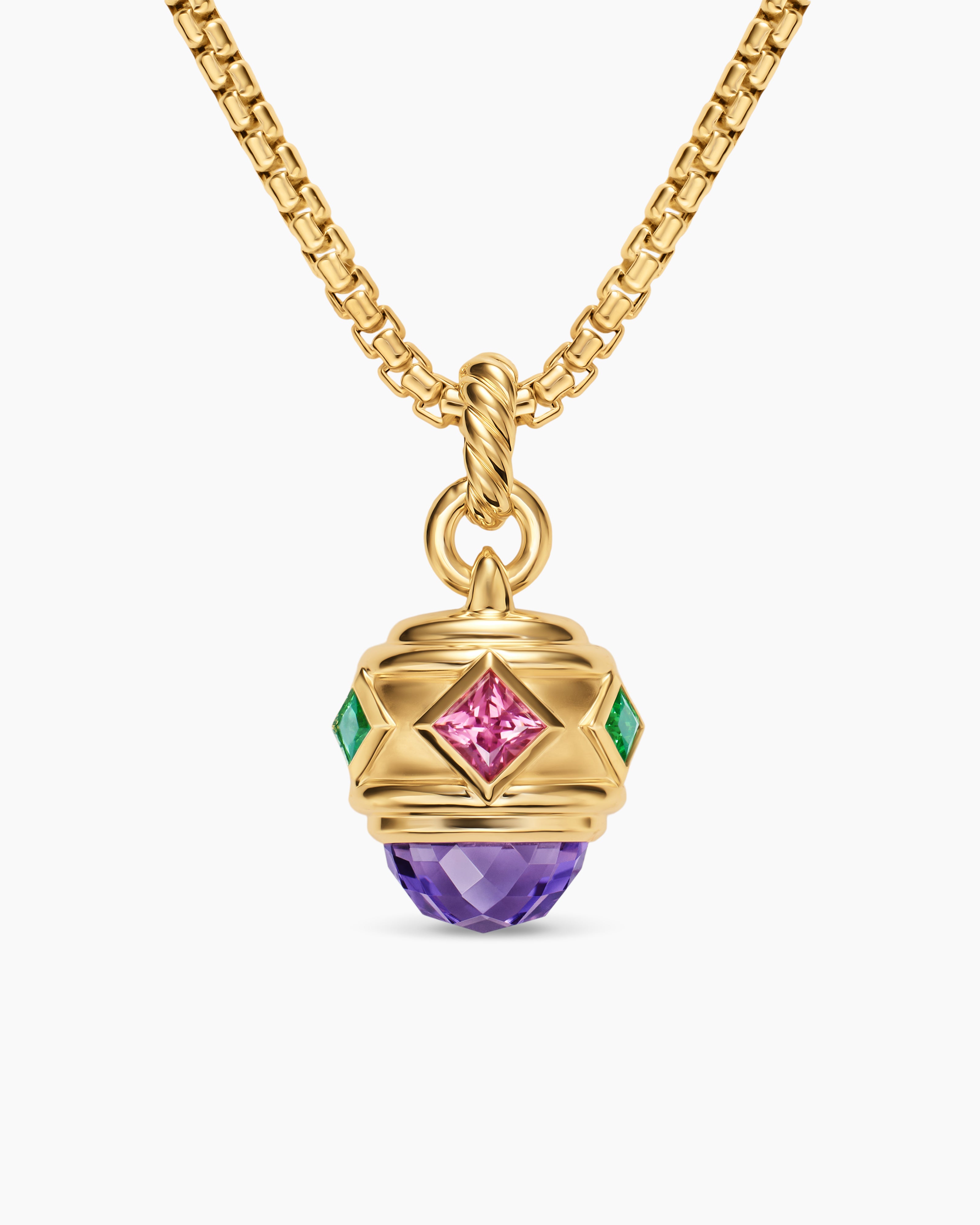 Amulette Renaissance® en or jaune 18 carats avec améthyste, tourmaline rose et tsavorites, 19,8 mm