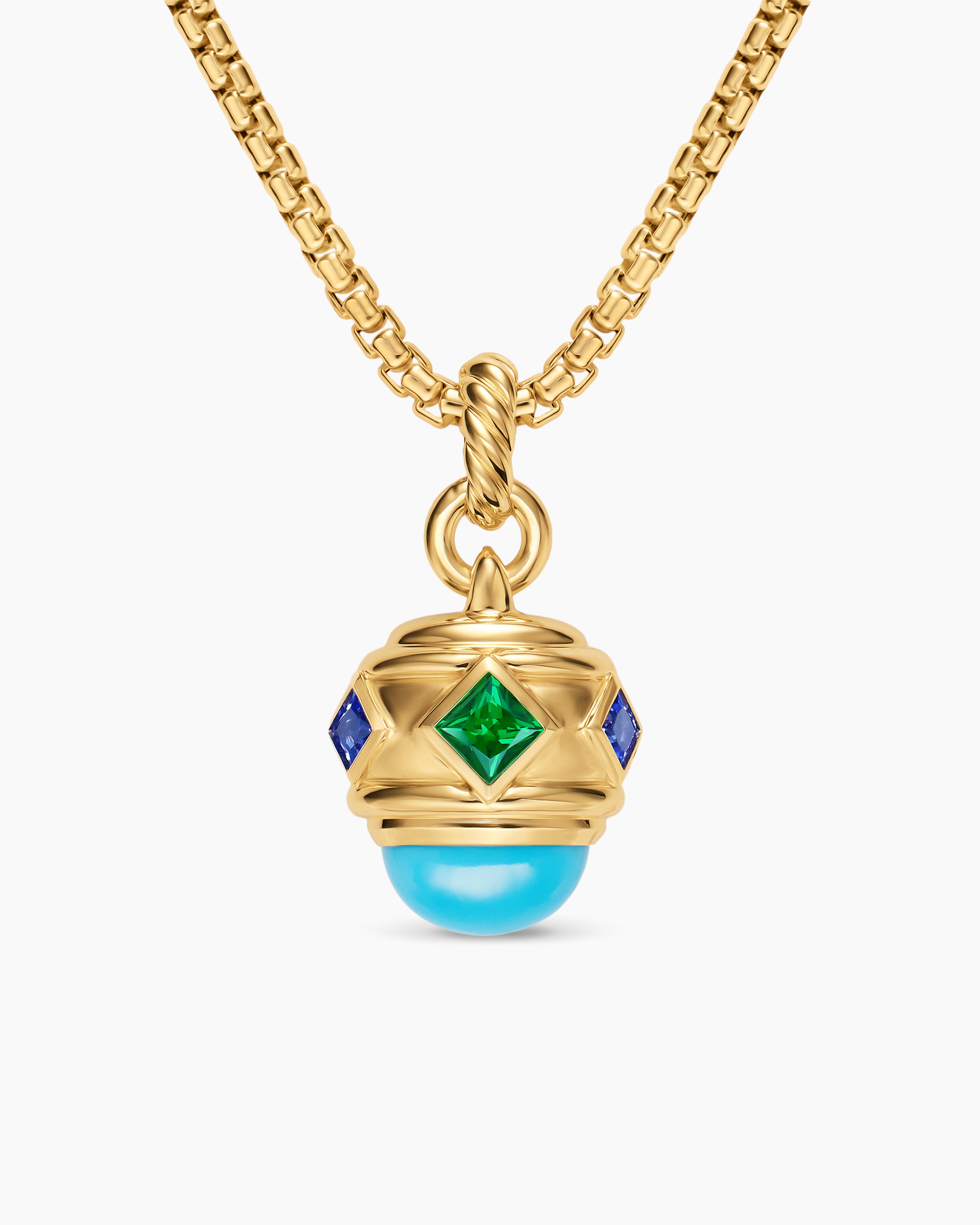 Amulette Renaissance® Or jaune 18 carats avec turquoise, tsavorites et tanzanites 19,8 mm