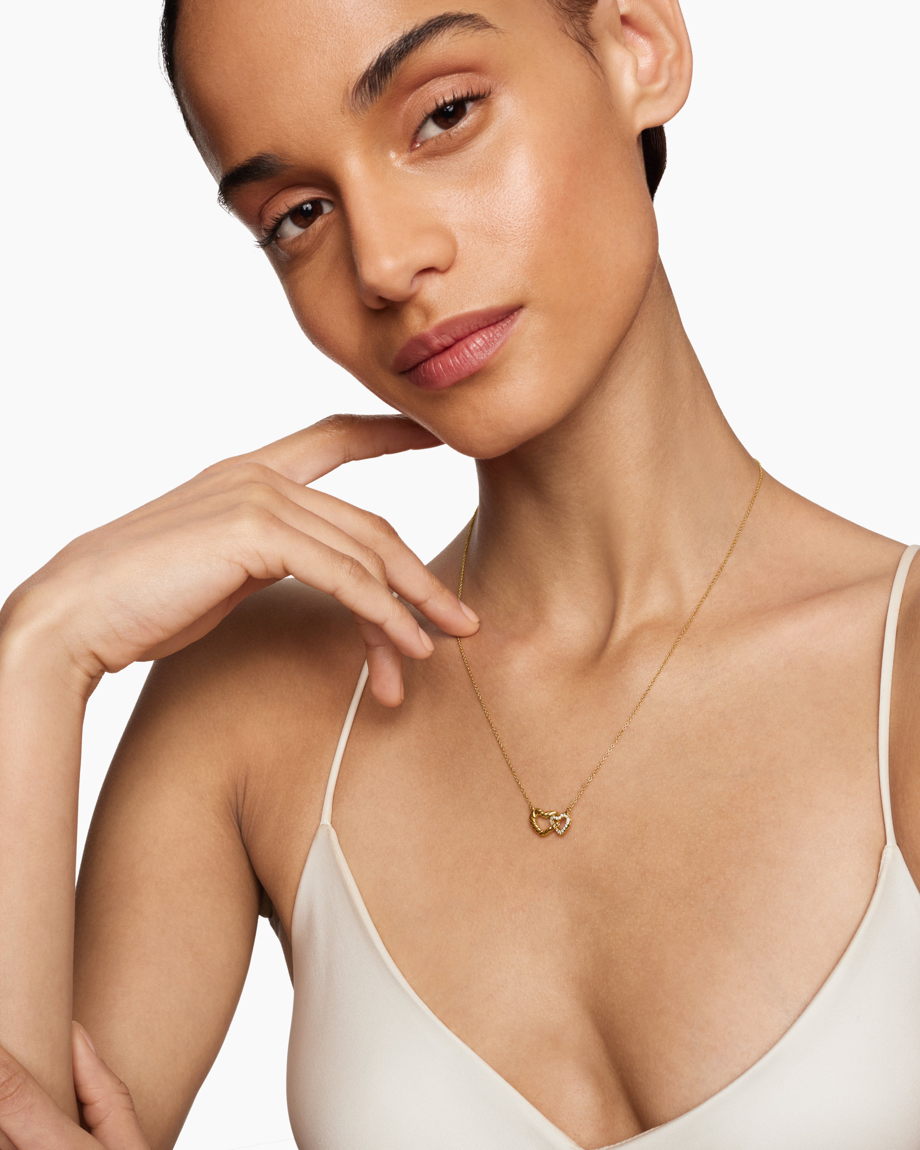 Collier avec cœurs entrecroisés Cable Collectibles® en or jaune 18 carats avec diamants, 20,6 mm | David Yurman Canada
