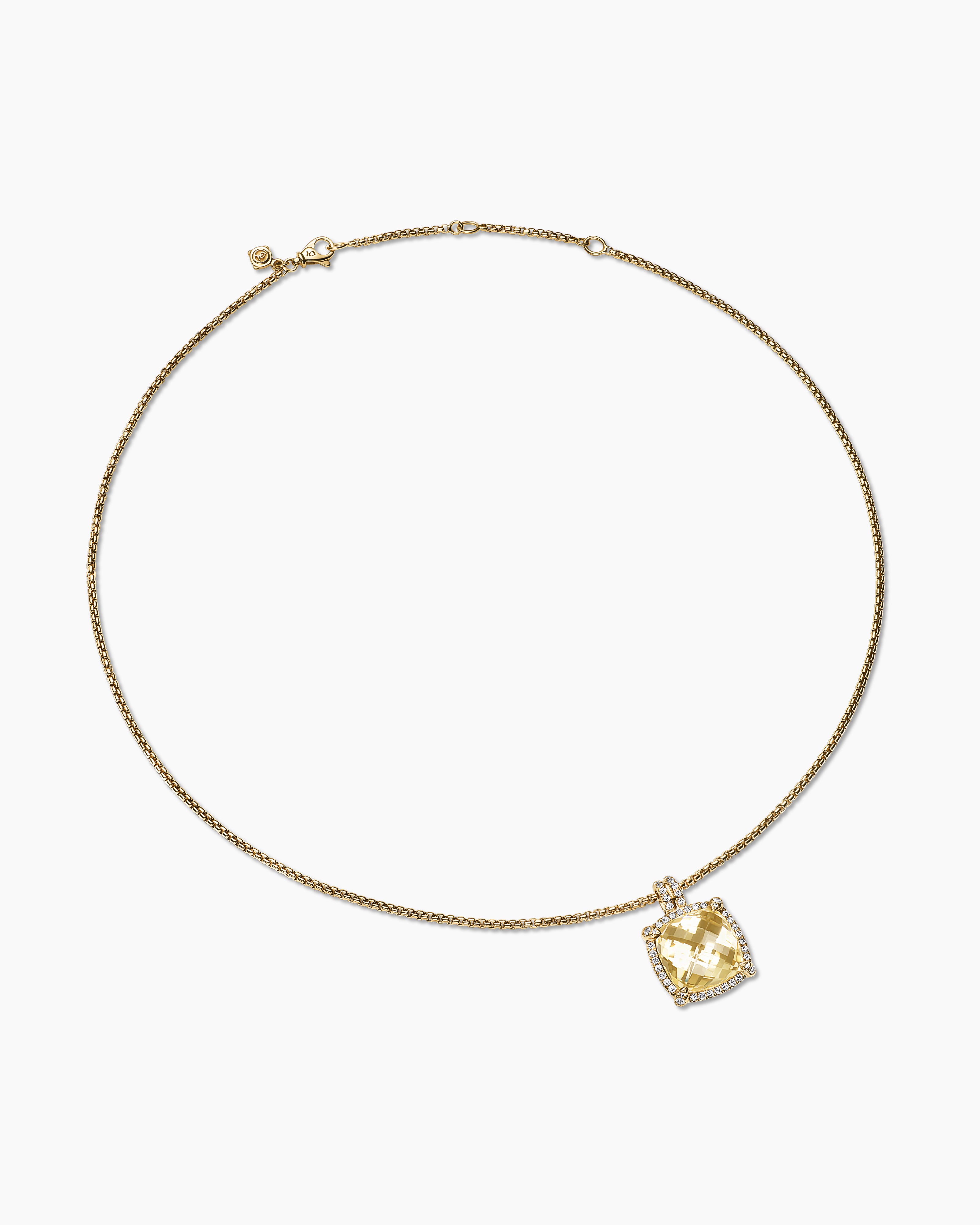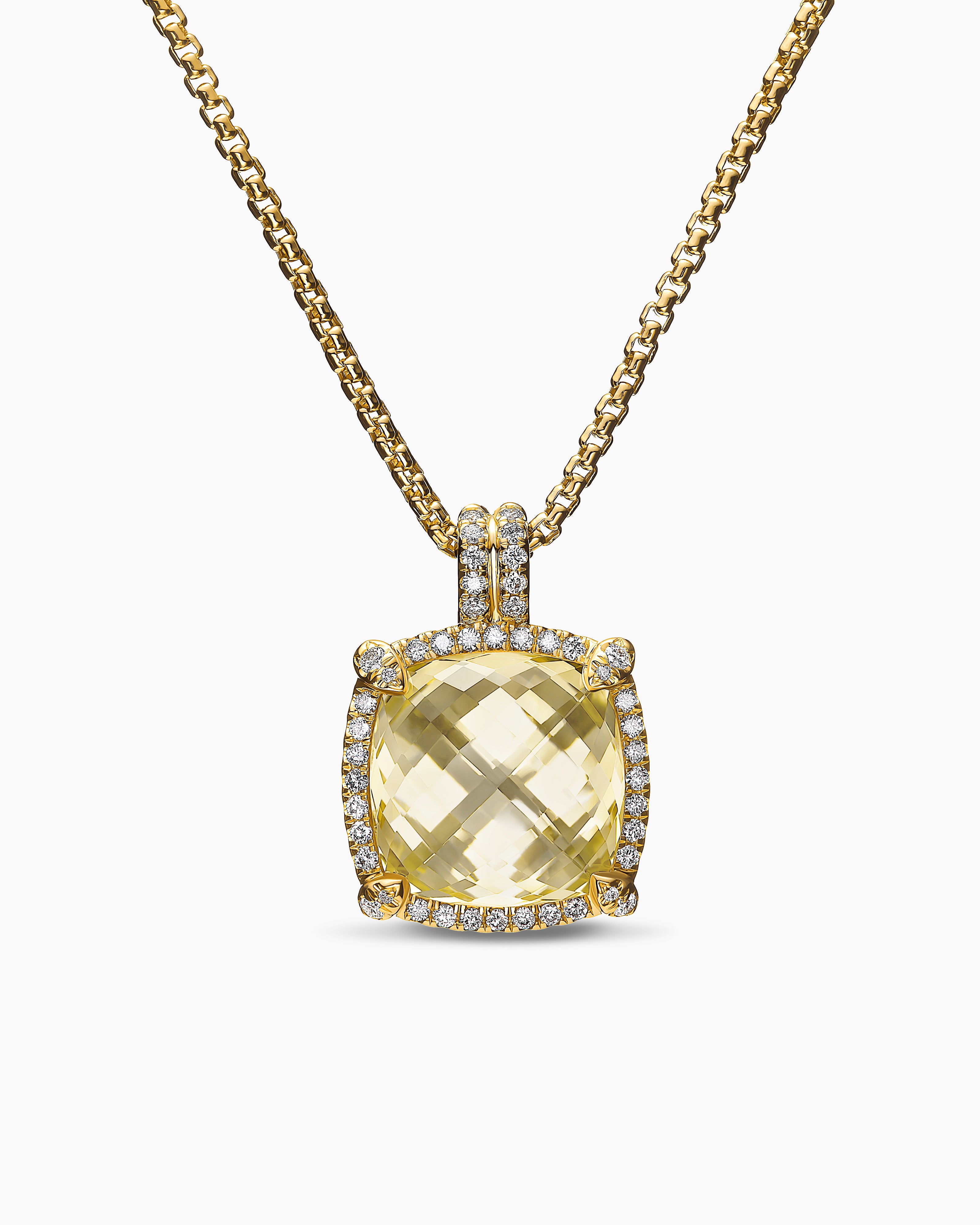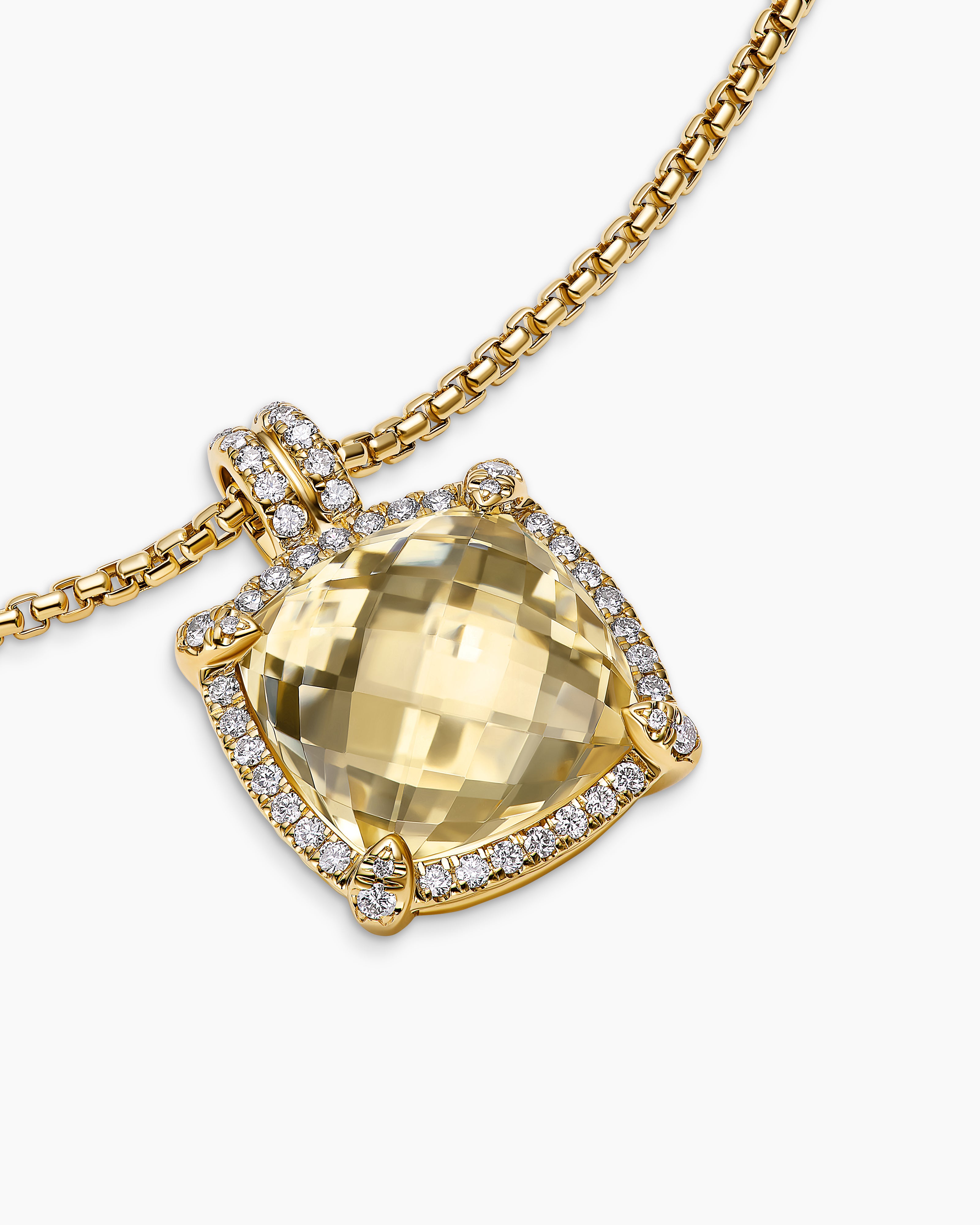 Collier avec pendentif à chatons et à pavé Chatelaine® Or jaune 18 carats avec citrine champagne et diamants, 14 mm