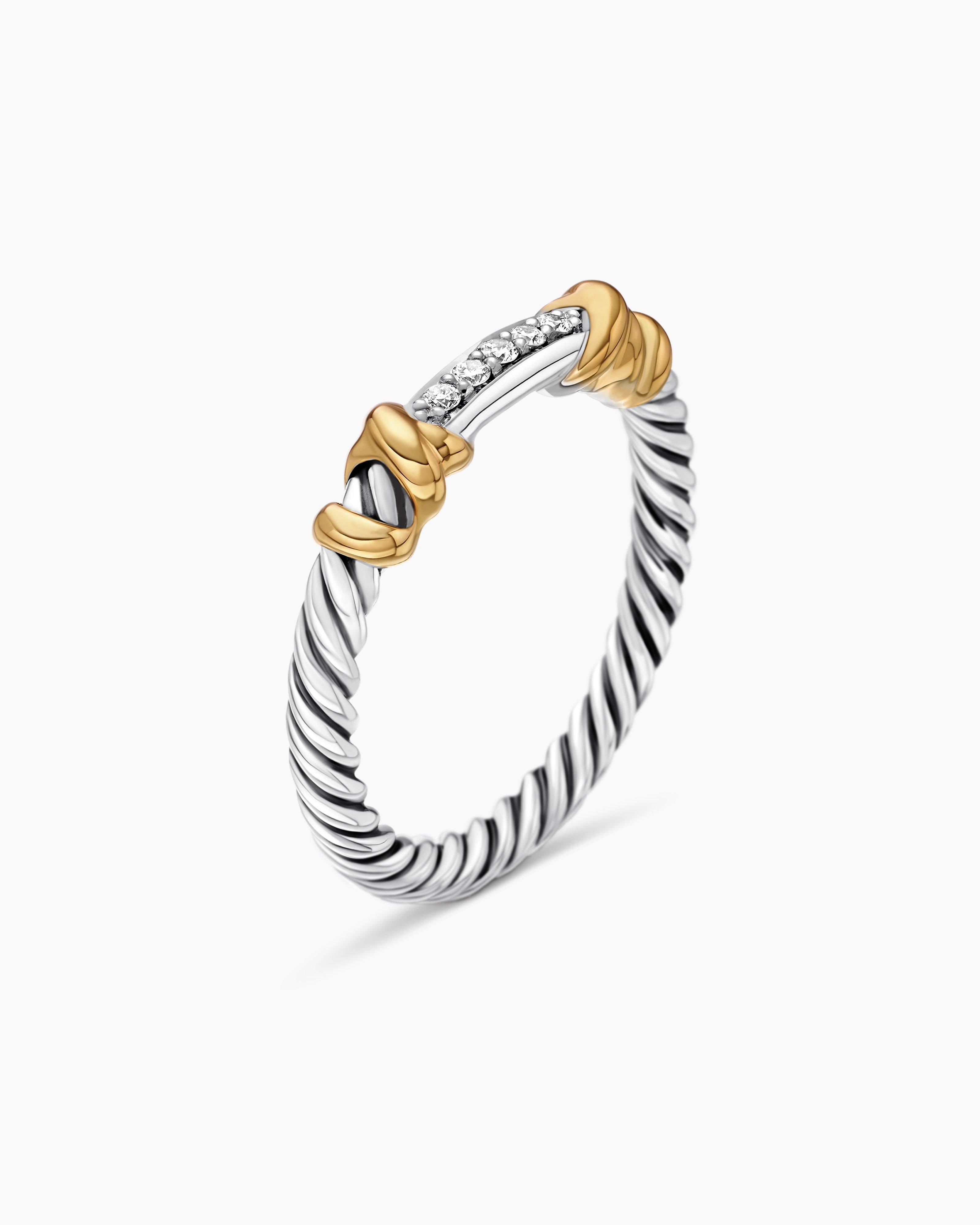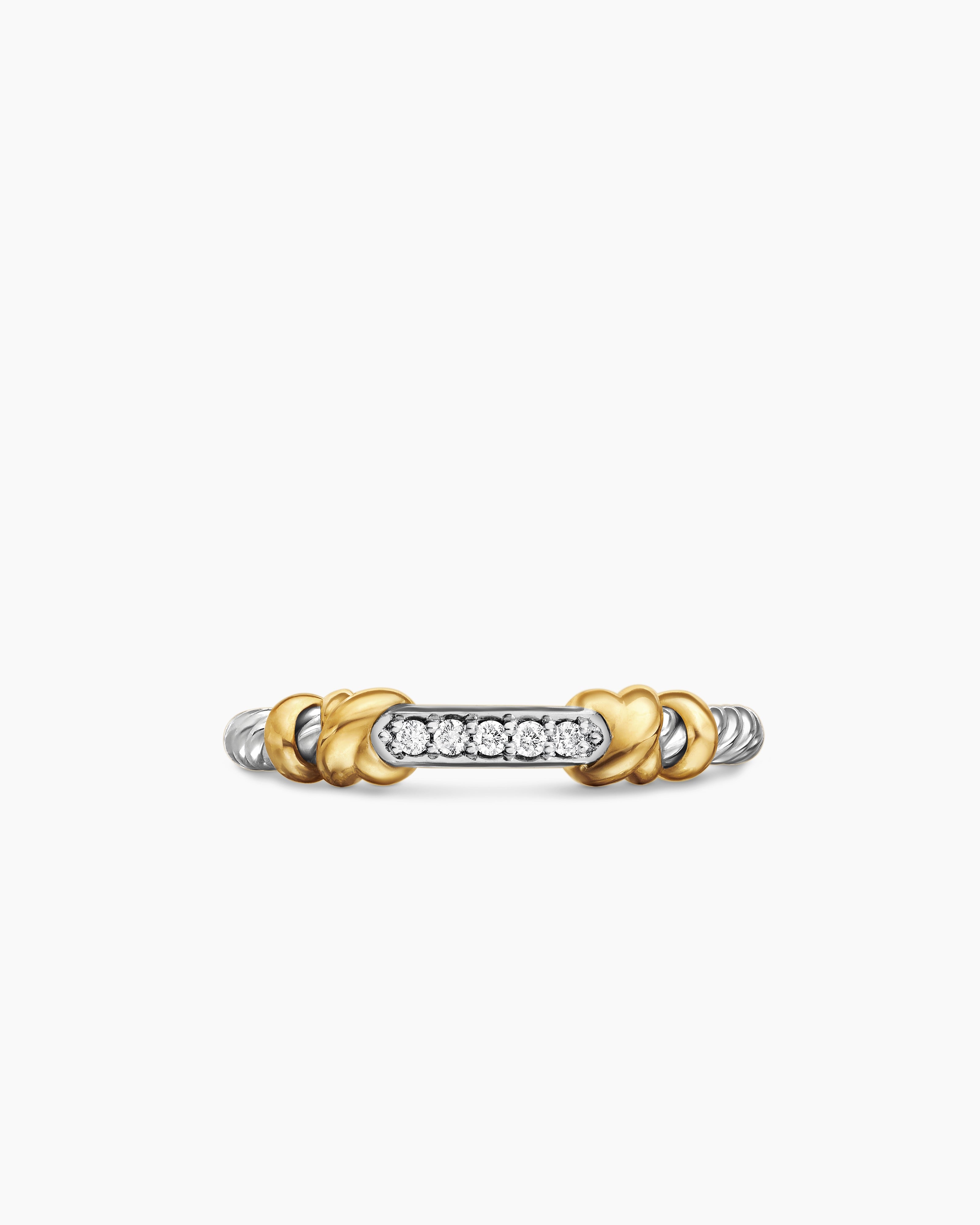 Anneau Petite Helena enroulé en argent massif avec or jaune 18 carats et diamants, 4 mm | David Yurman France
