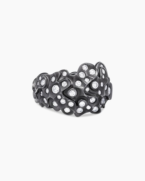 Bague en dôme Petals Or blanc avec rhodium noir et diamants