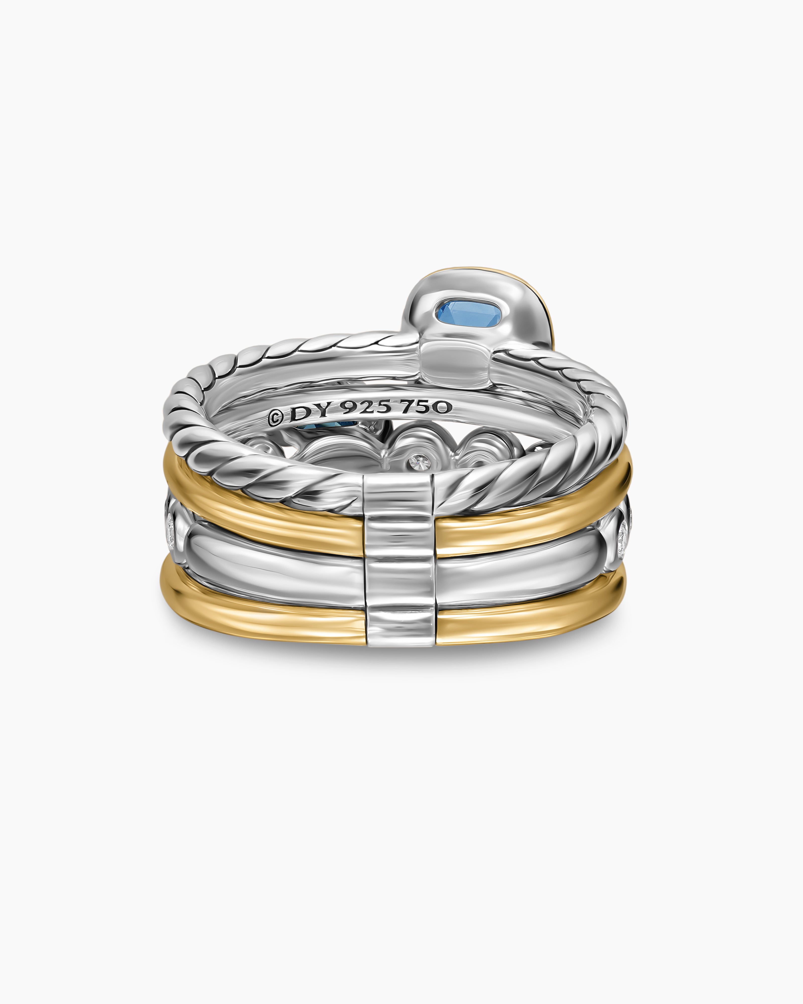 Bague multirang à pierre de couleur DY Mercer® Argent massif avec or jaune 18 carats, topaze bleue et diamants, 10 mm