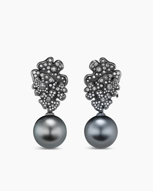 Boucles d’oreilles en grappes Petals et Pearl Or blanc avec rhodium noir et diamants
