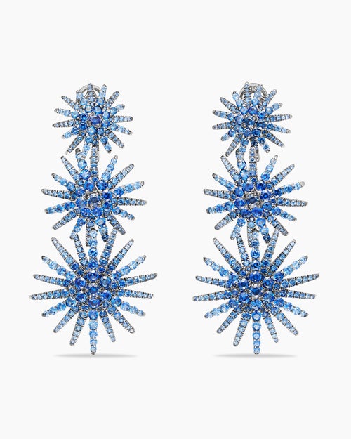 Boucles d’oreilles triples Starburst en or blanc avec pavé de saphirs | David Yurman France