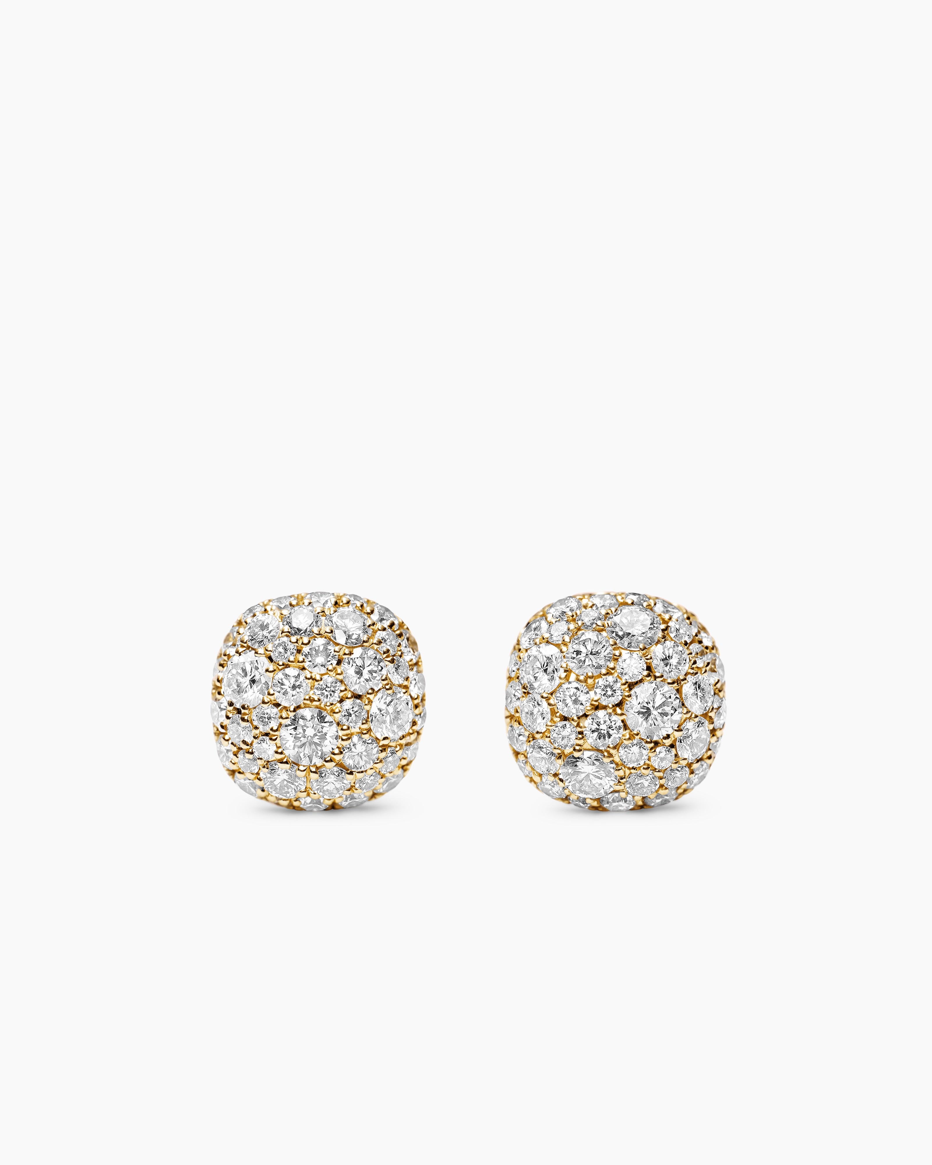 Clous d’oreilles coussin Or jaune 18 carats avec diamants, 8 mm
