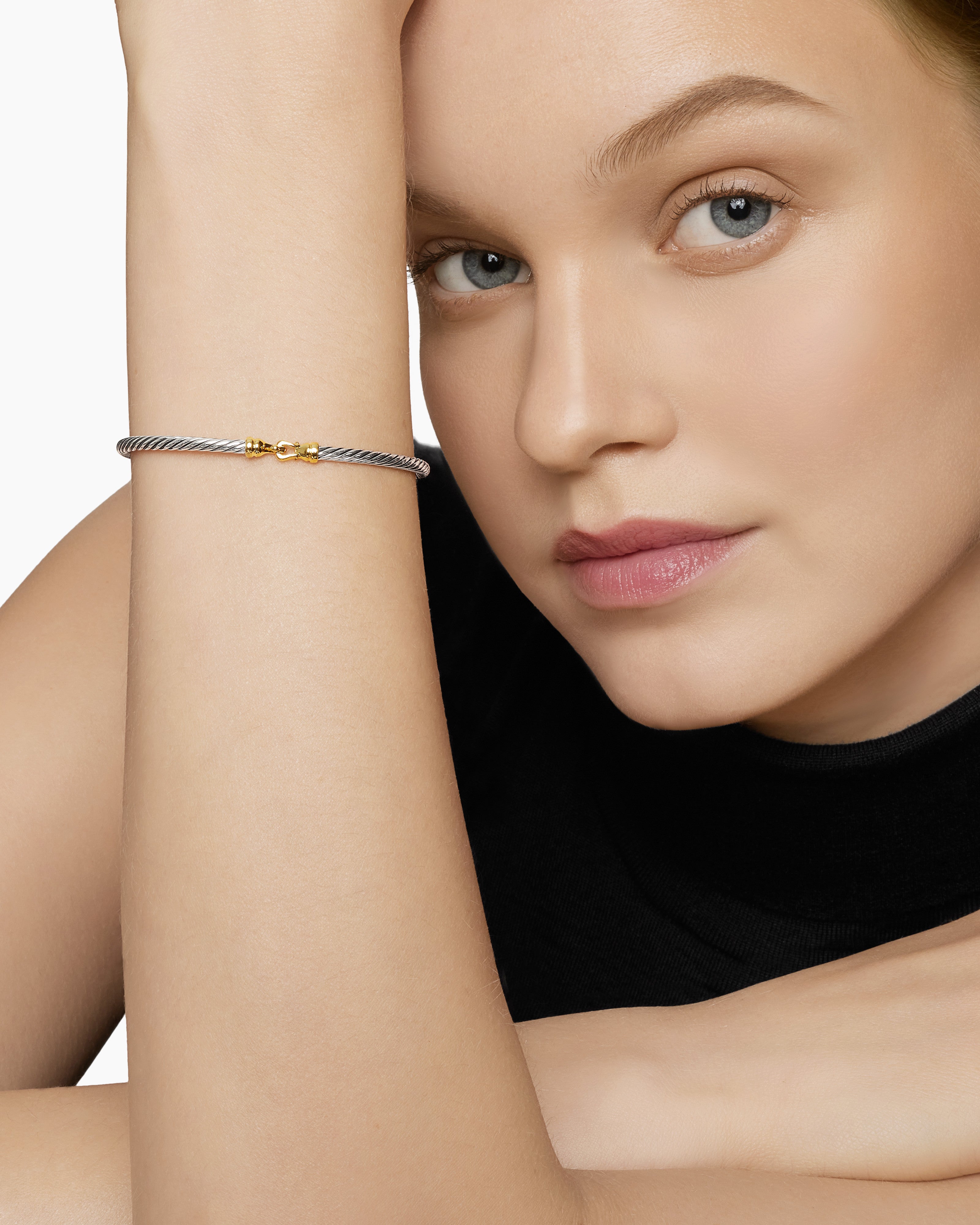 David a façonné à la main plus de 15 mètres de fil d’or pour former le premier design Cable, dont les extrémités étaient ornées de tourmaline rose et d’émeraude. Aujourd’hui, le motif torsadé Cable apparaît dans toutes nos collections, des bagues aux pendentifs en passant par les maillons de chaîne sculpturaux, souvent dans des combinaisons saisissantes de métaux mélangés polis sertis de pierre brillantes. Un fil conducteur de nos designs emblématiques qui, pourtant, sont en constante évolution.