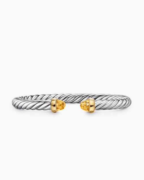 Bracelet Cable Flex® Argent massif avec or jaune 14 carats et citrine, 6 mm