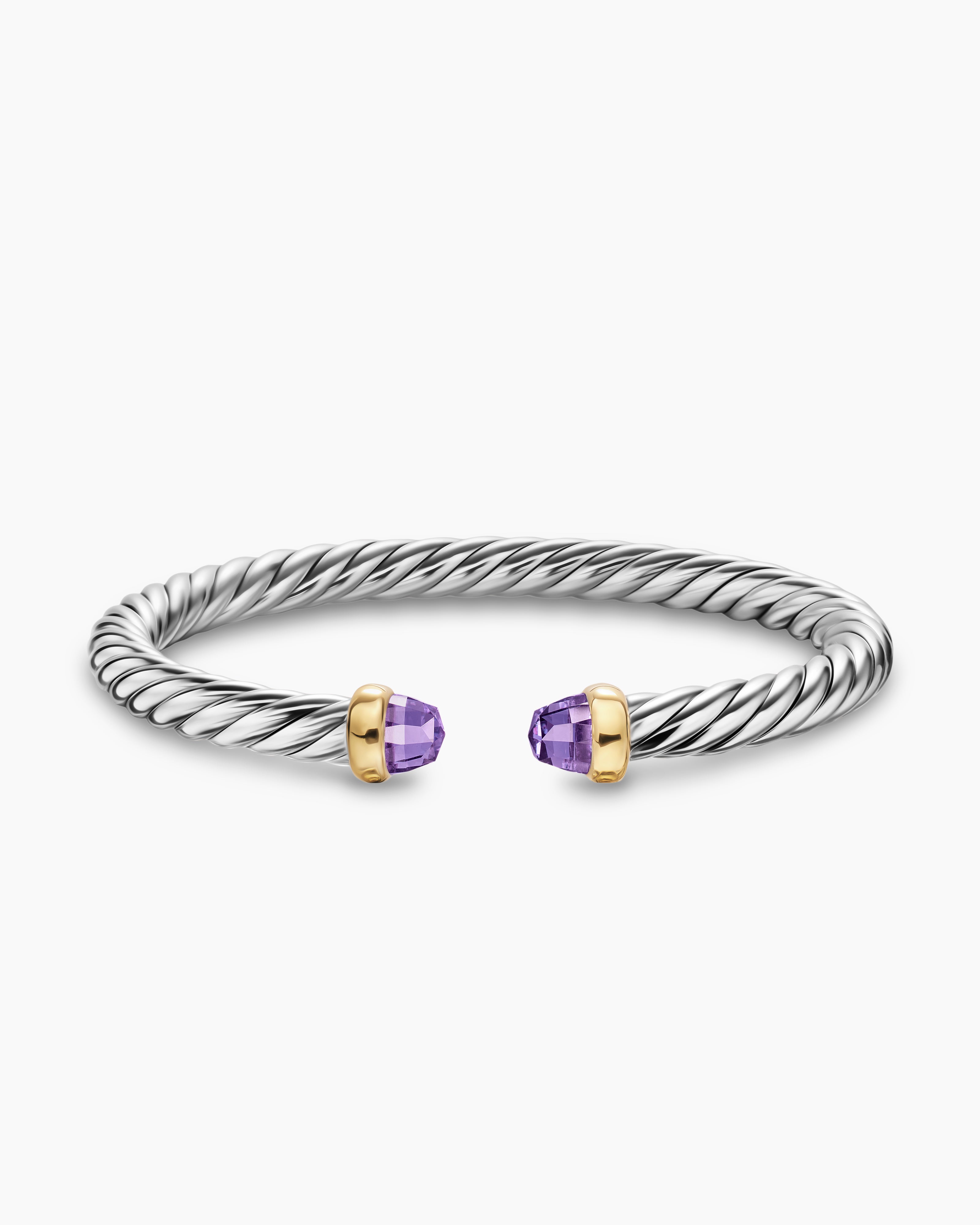 Bracelet Cable Flex® Argent massif avec or jaune 14 carats et améthyste, 6 mm