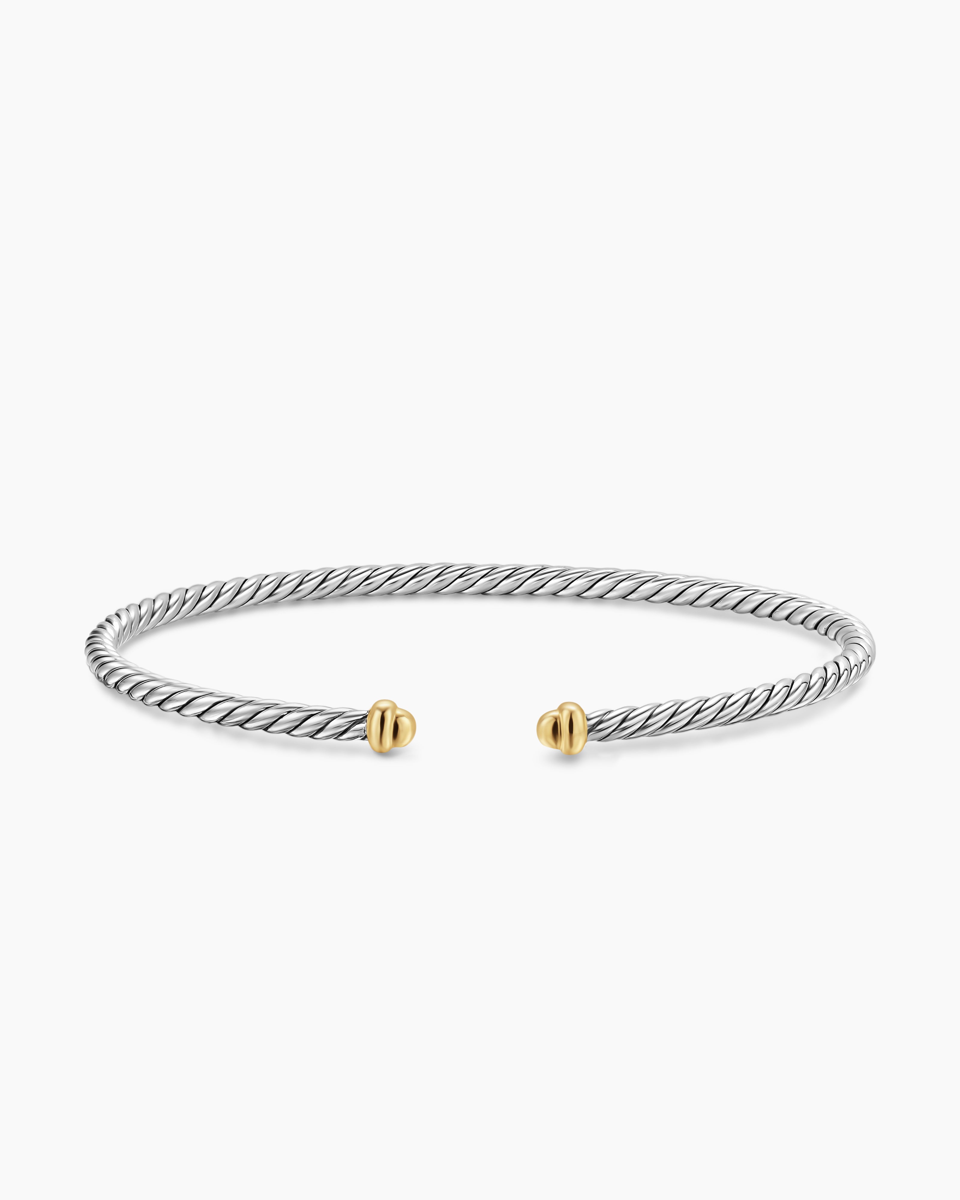 Signature artistique de David Yurman, Cable, a commencé avec un bracelet qu’il a tordu à la main à partir de 15 mètres de fil. Depuis plus de 40 ans, il a transformé l’hélice torsadée en une multitude de modèles.