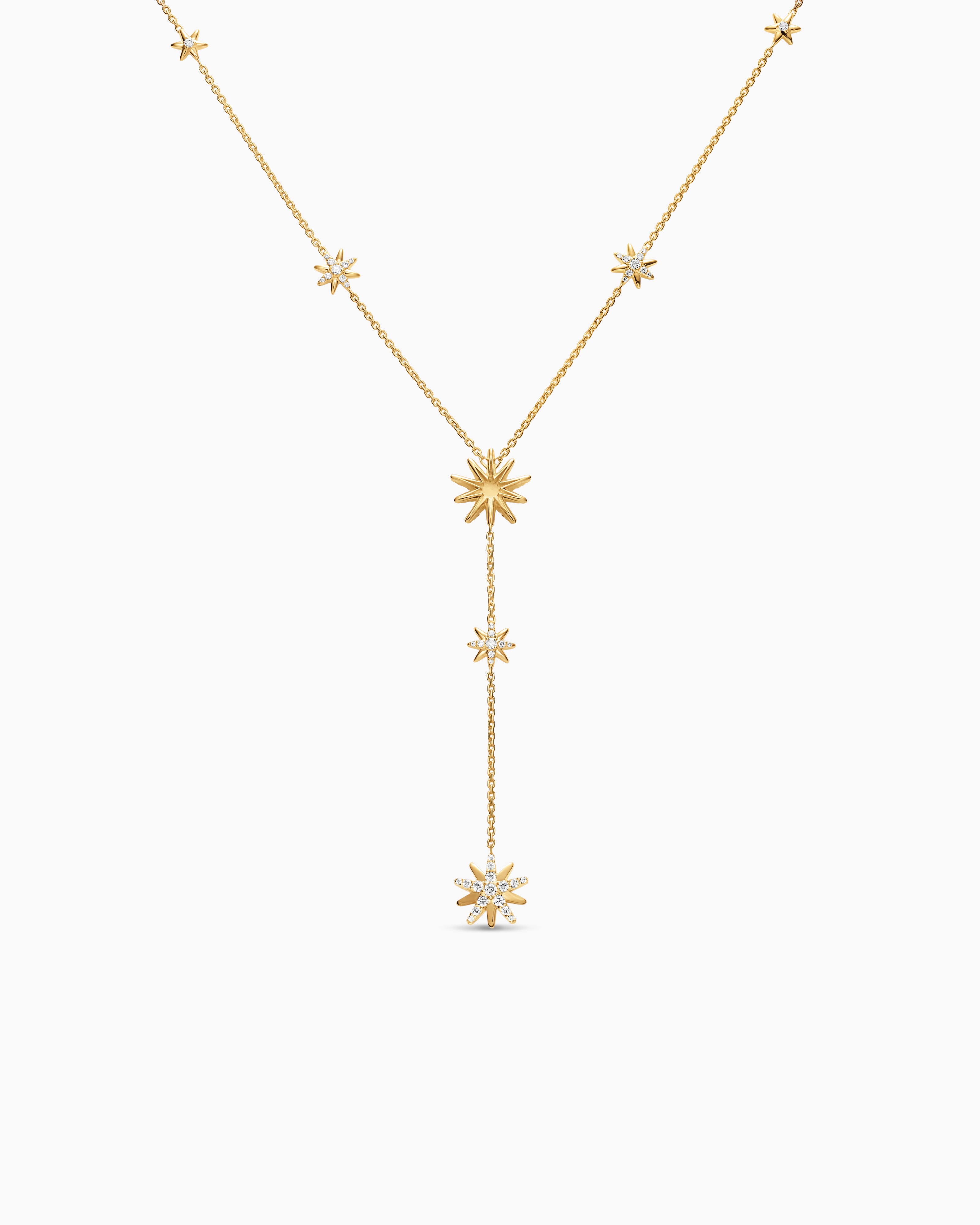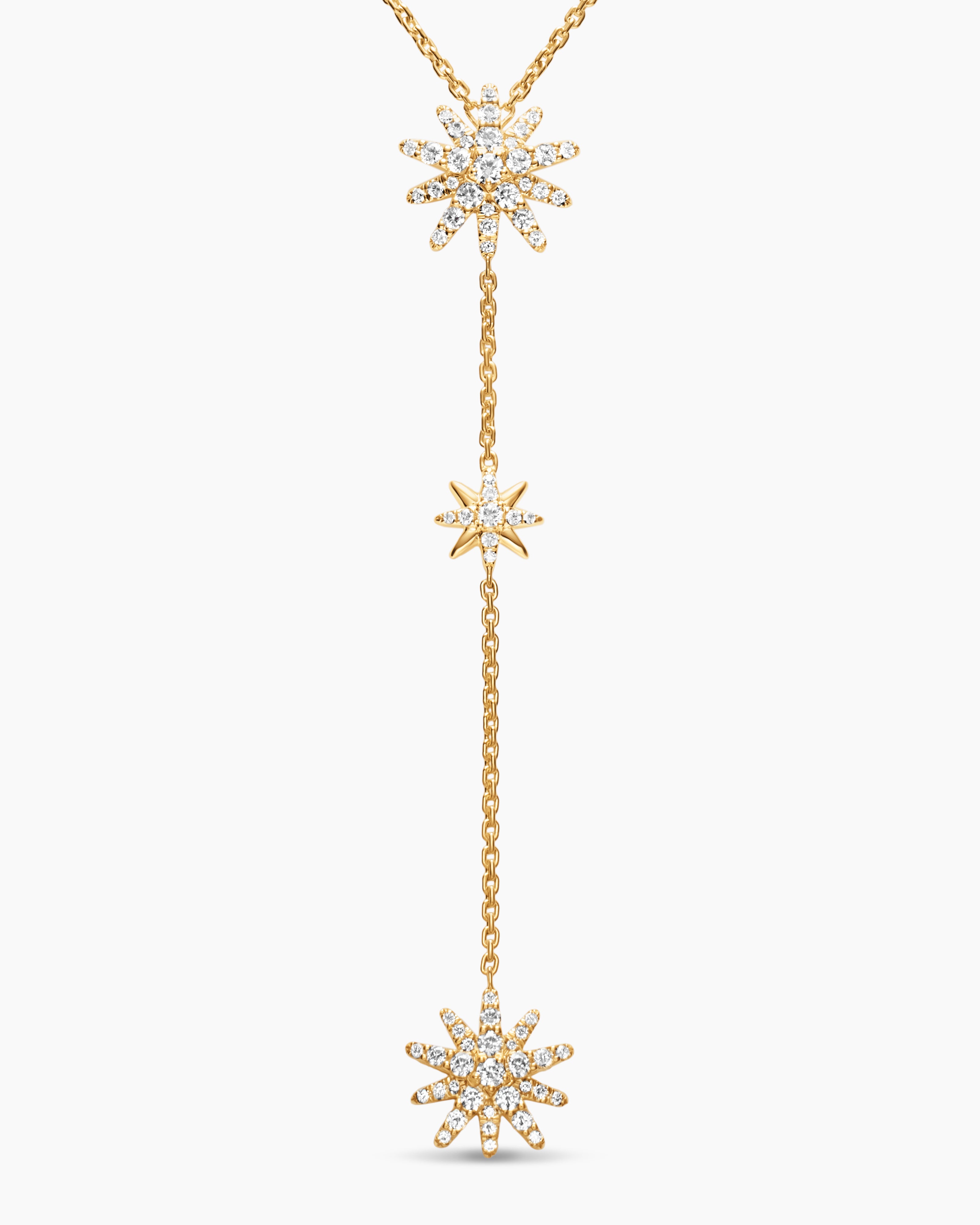 Collier en Y Starburst Or jaune 18 carats et diamants, 76,7 mm