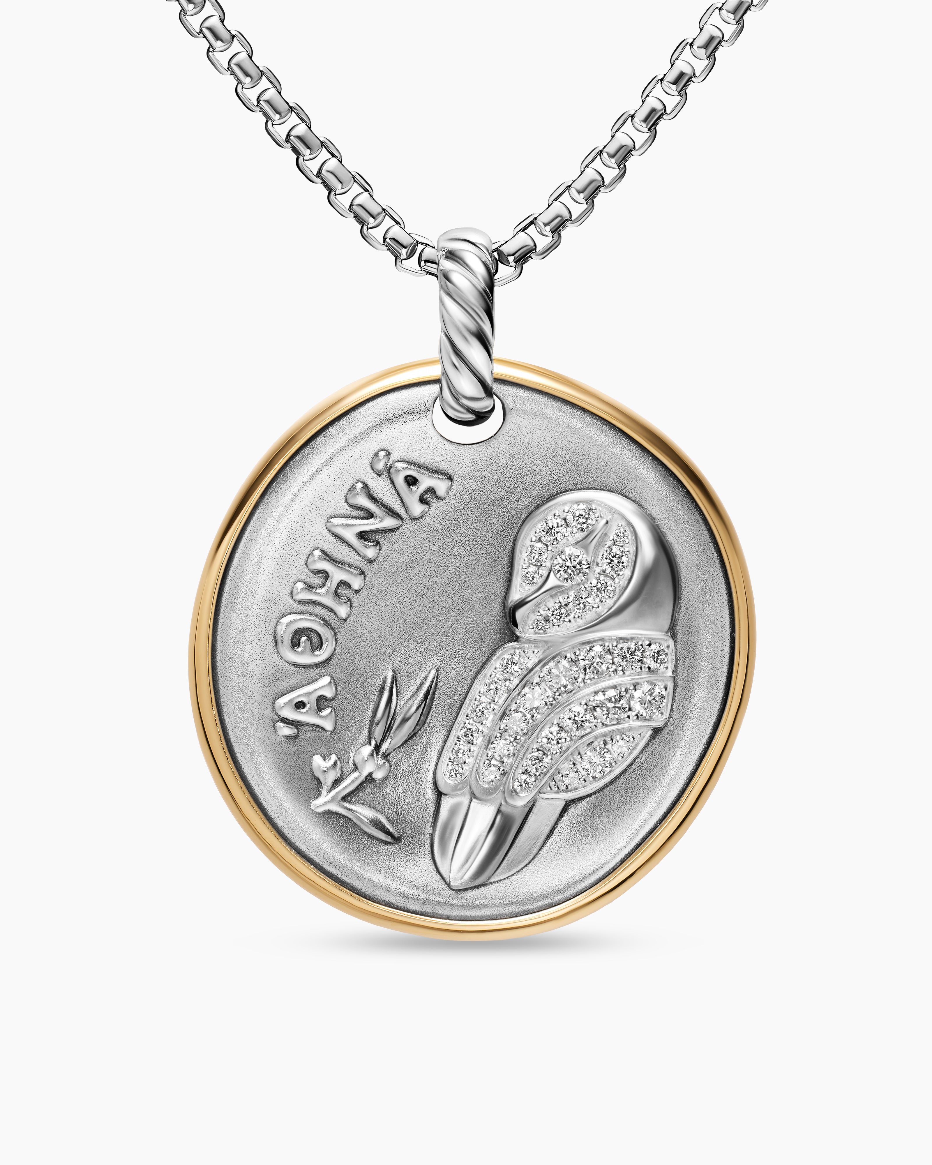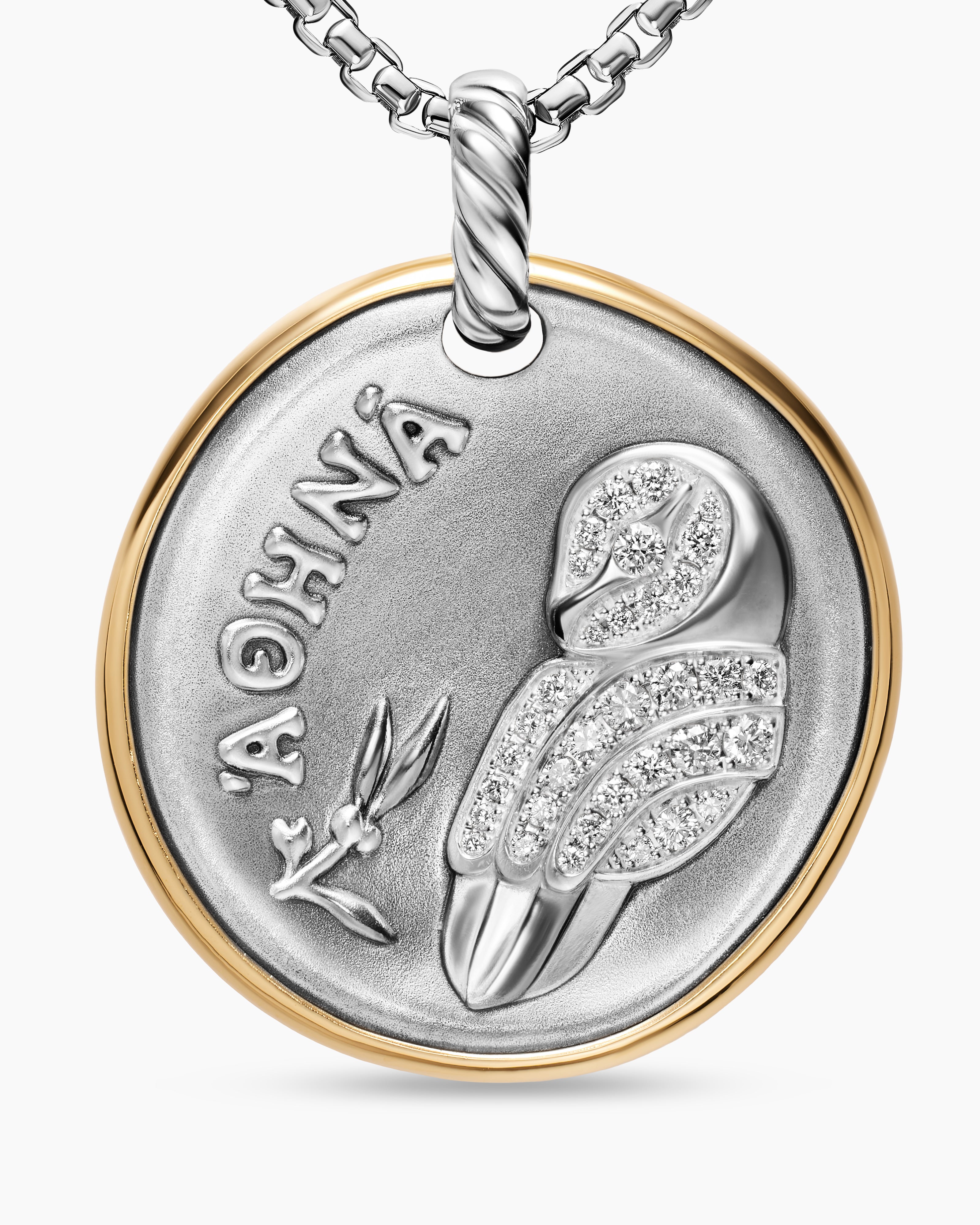 Amulette Athéna Argent massif avec or jaune 14 carats et diamants, 29,5 mm