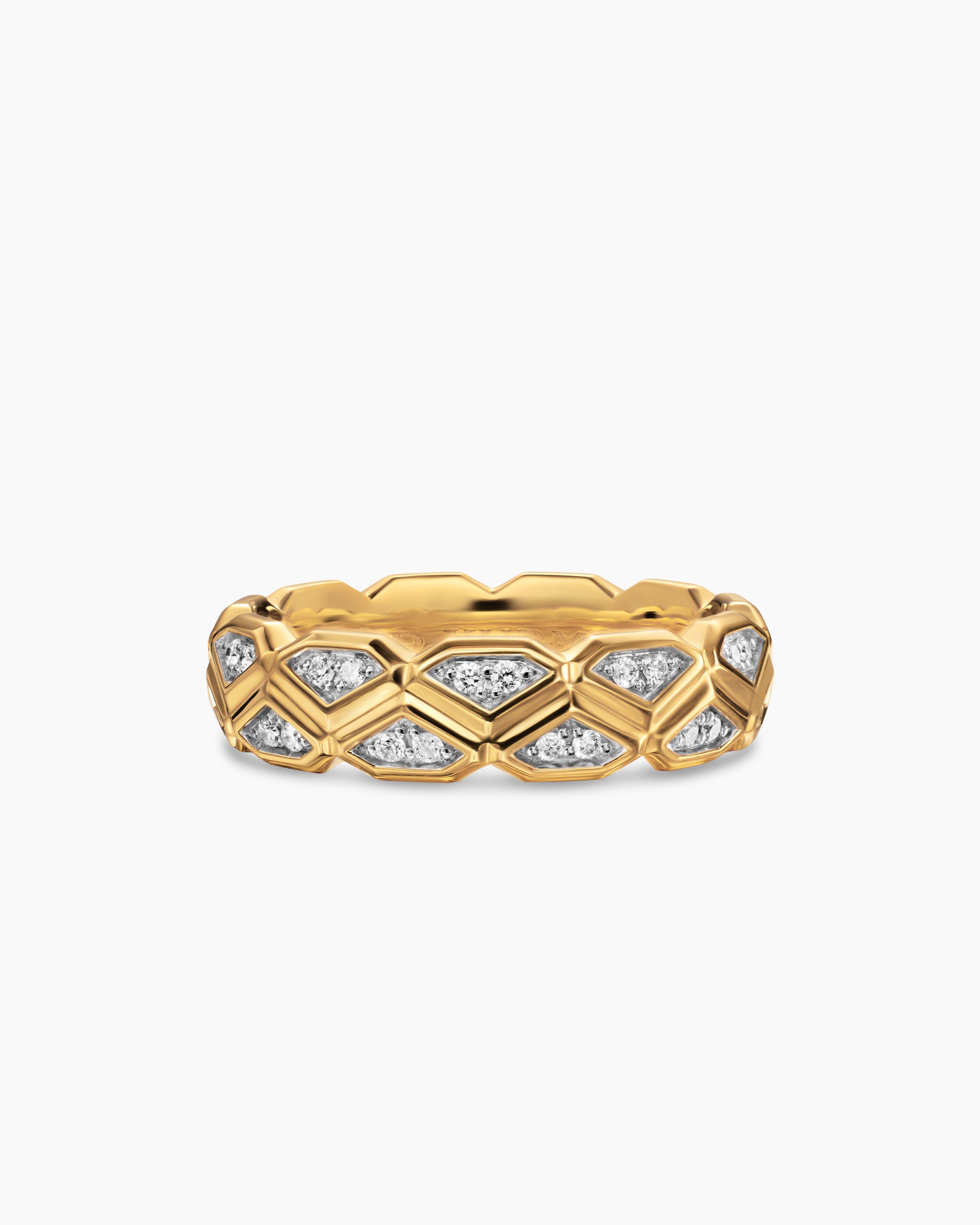 Anneau Hex Or jaune 18 carats avec diamants, 6 mm