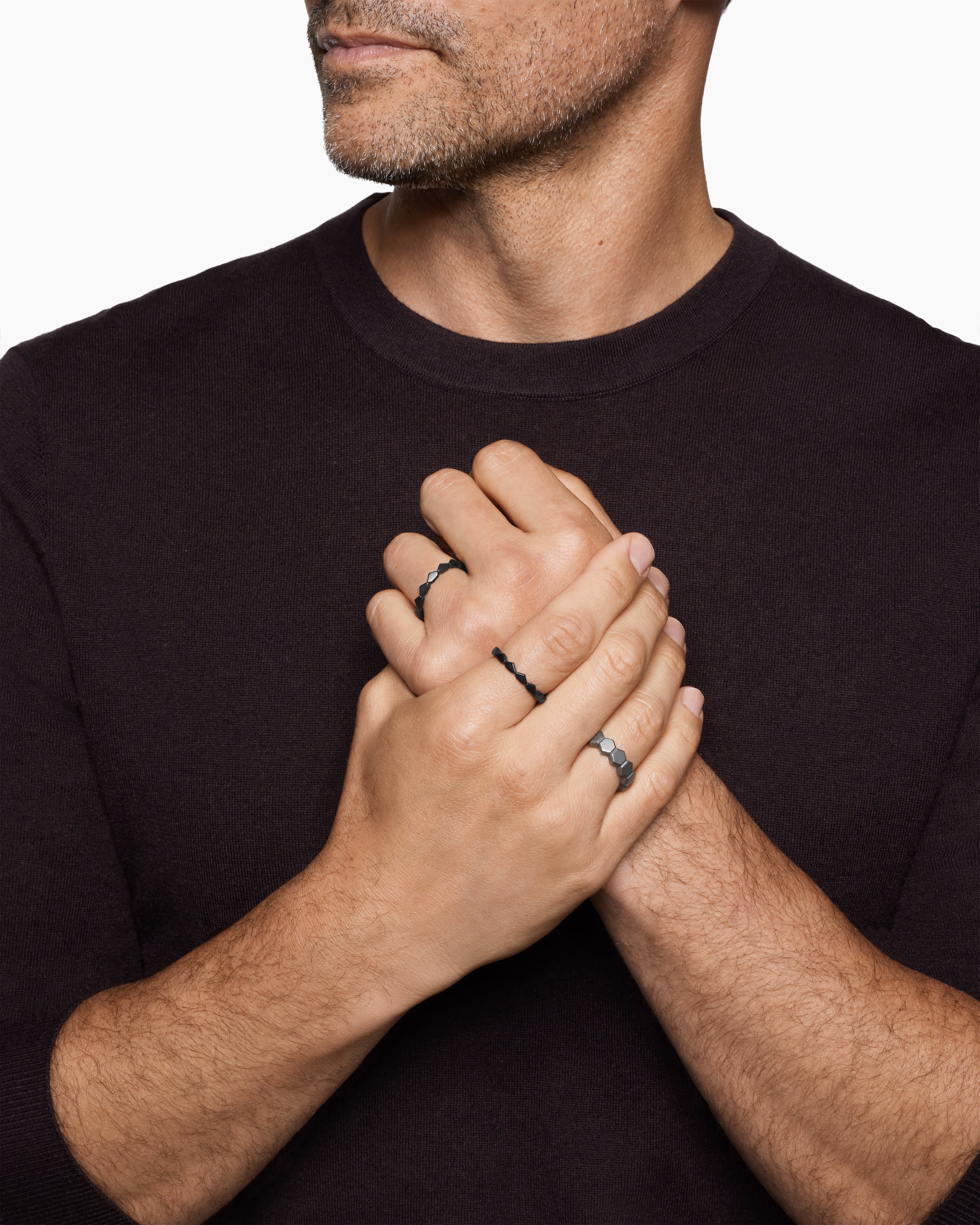 Bague superposable Hex Titane noir et titane gris, 9,3 mm