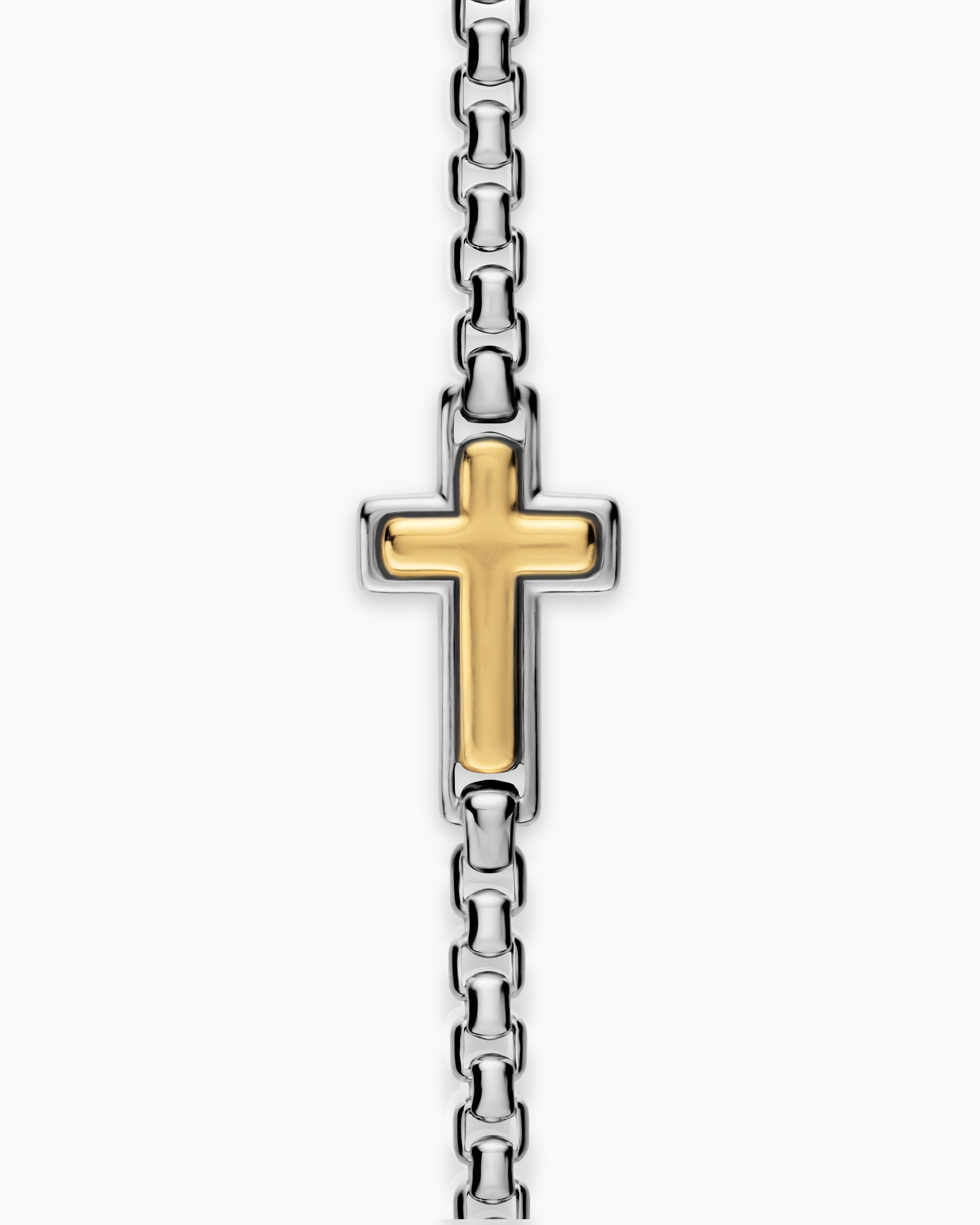 Bracelet à ornement Croix Argent massif avec or jaune 14 carats, 3,6 mm