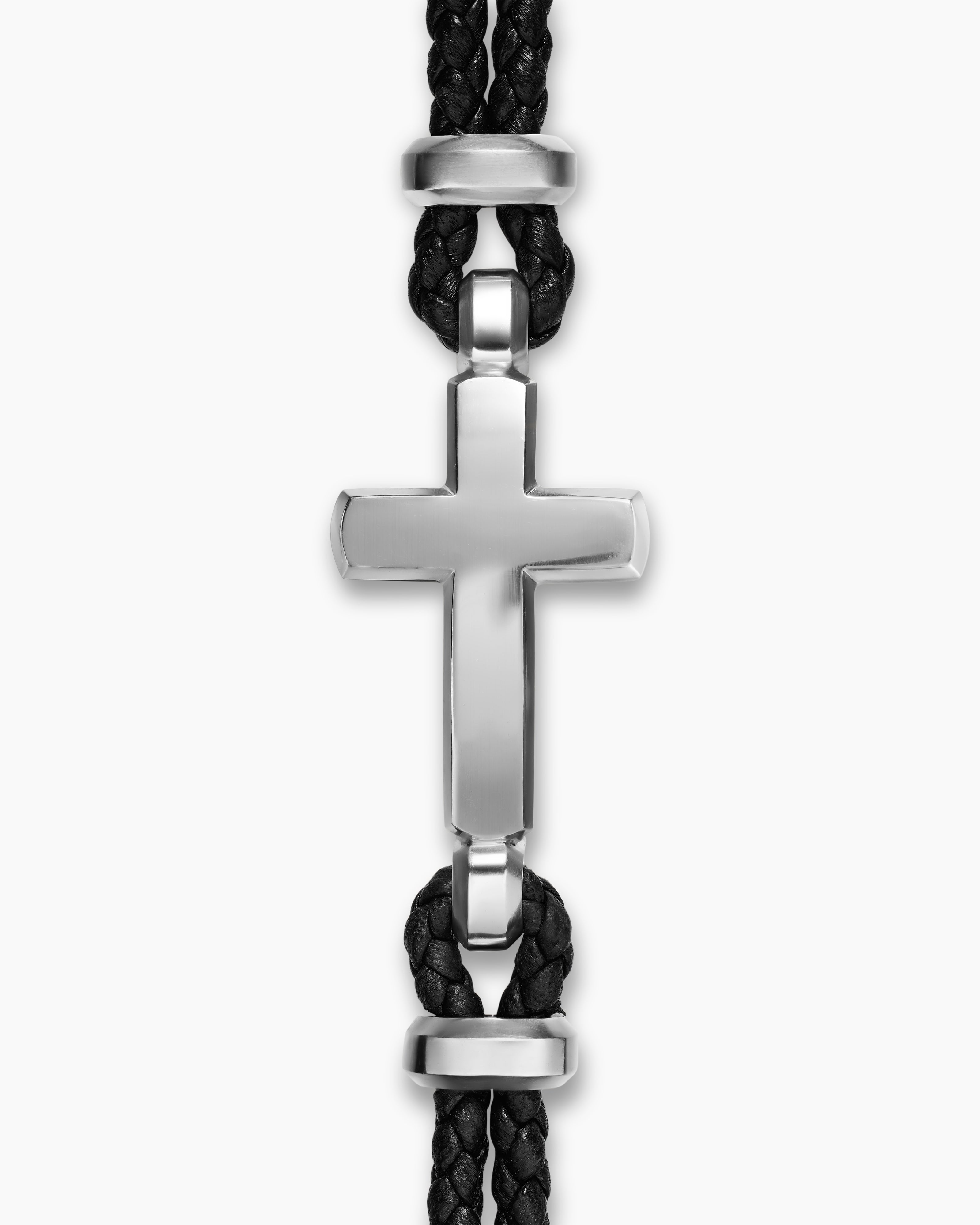 Bracelet à ornement Croix Streamline® Cuir noir avec argent massif, 6 mm
